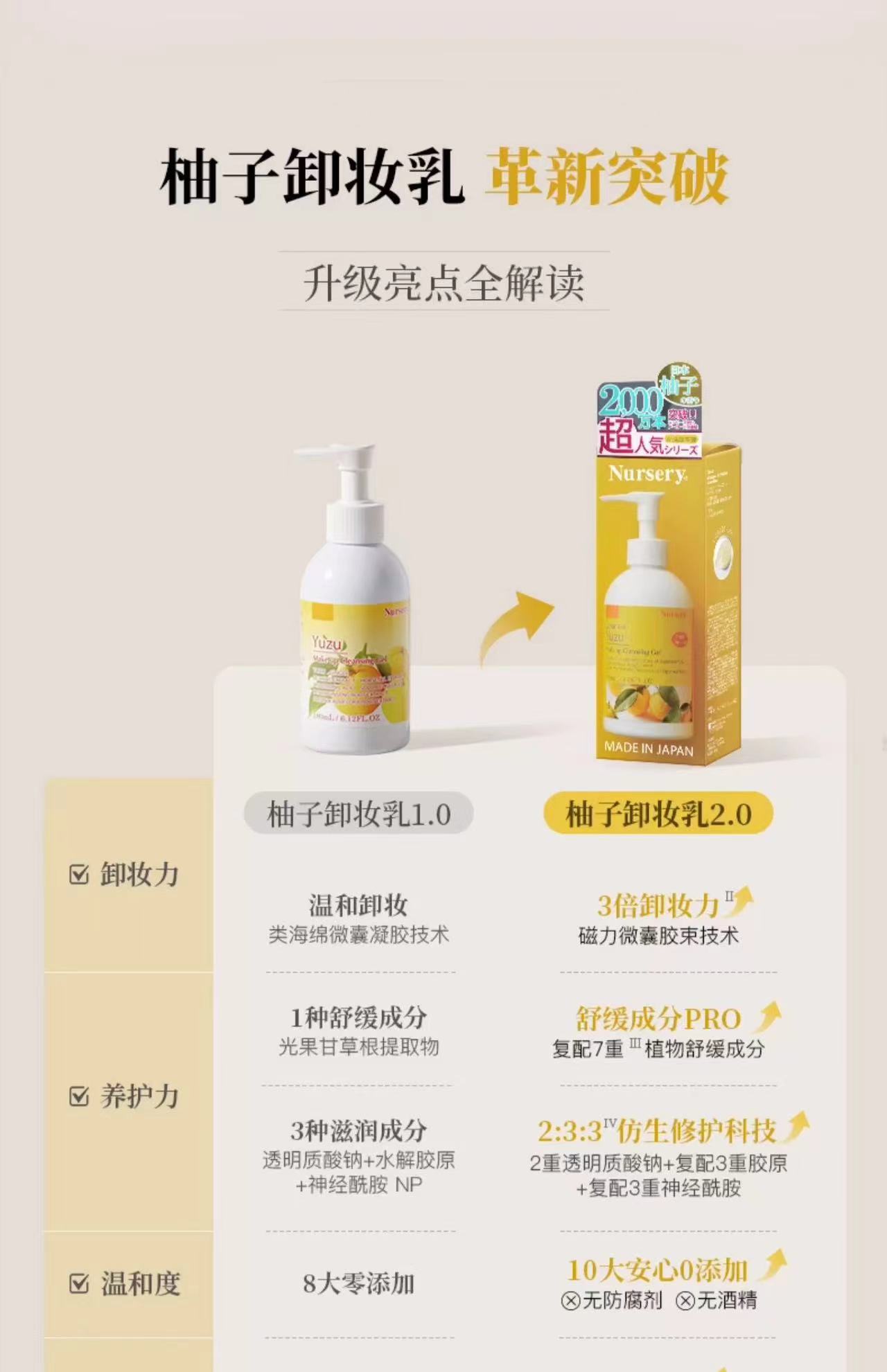 【门店直发】Nursery 舒缓卸妆凝露卸妆乳柚子香500ml/180ml(新老包装随机发货)