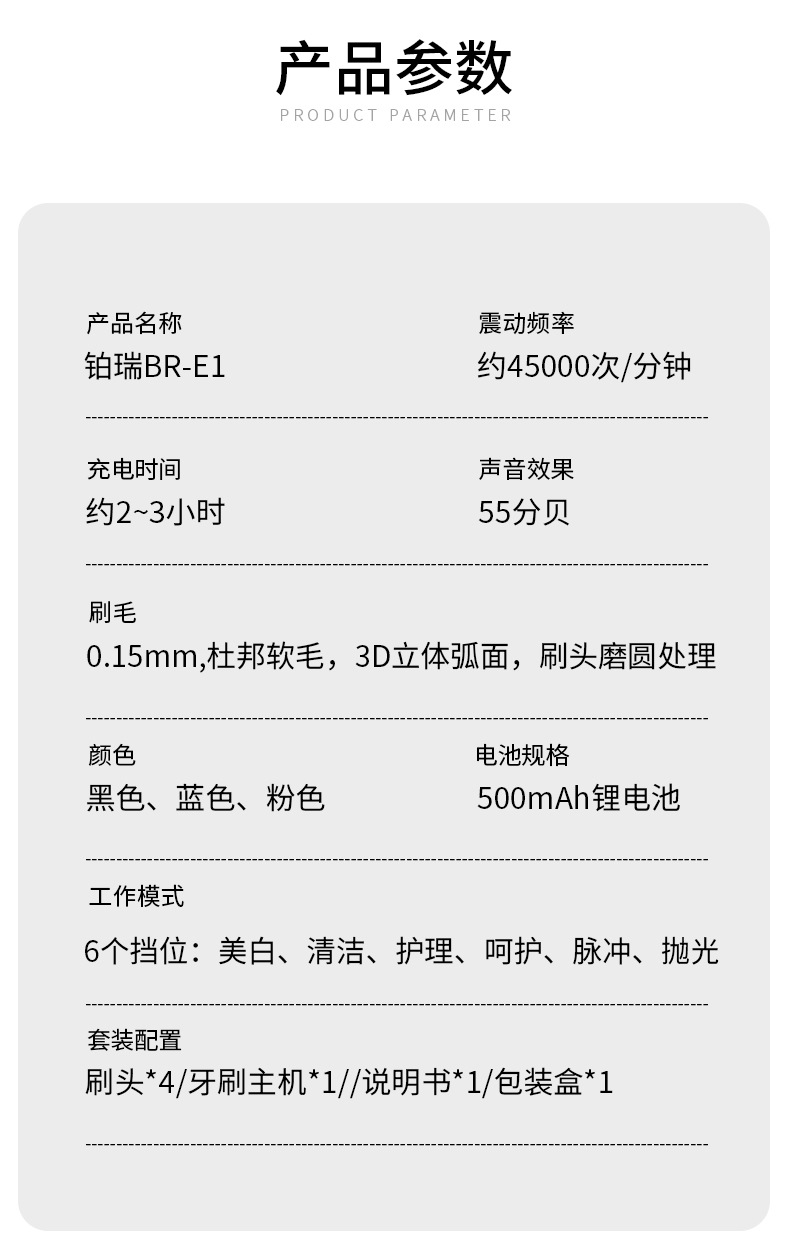 产品名称:铂瑞智能声波电动牙刷