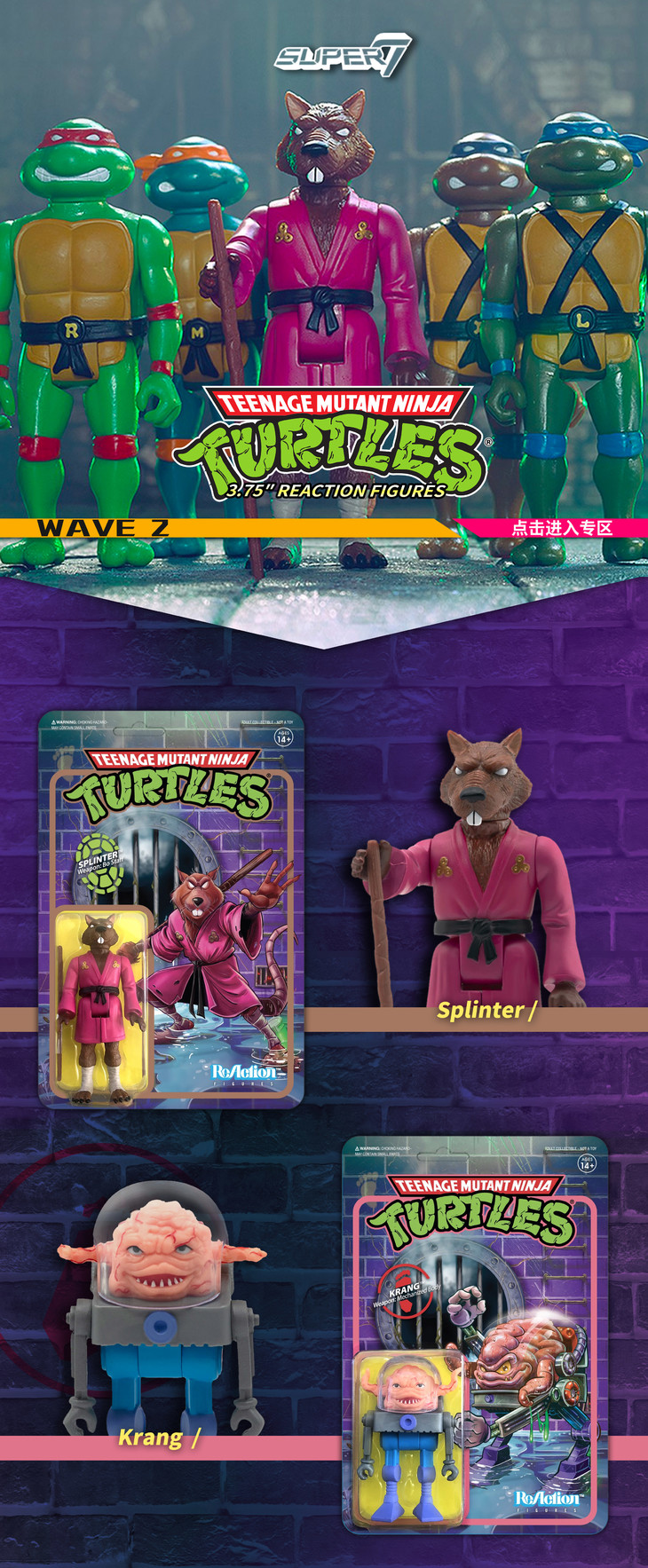 现货 Super7 忍者神龟 TMNT 挂卡 系列 Wave 2