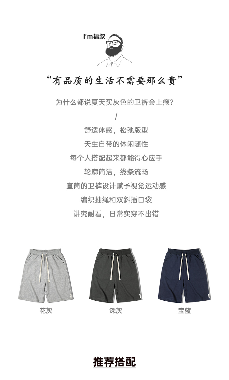 面料舒适 休闲随性 | 男士针织运动短裤 夏季马登直筒工装螺纹毛圈抽绳卫裤 花灰/宝蓝/深灰 3色入
