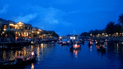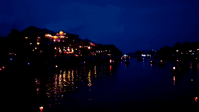 晚上,【会安古镇】的每条街每间店每棵树,以及河里的船上,都挂满了灯笼,很有情调。