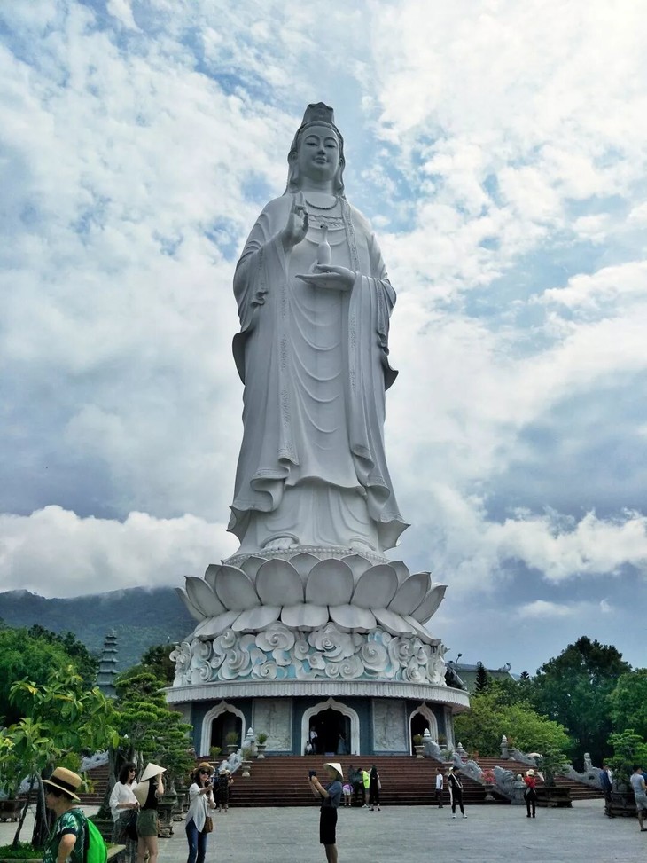 【山茶半岛】,这里伫立着东南亚最高的观音像(约68米),观音佛像的后面就是灵应寺的所在,灵应寺终年香火缭绕,吸引着越南各地的善男信女前来参拜。