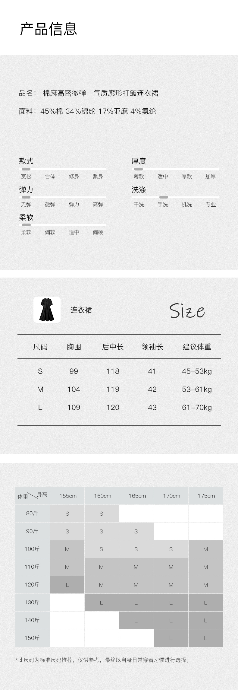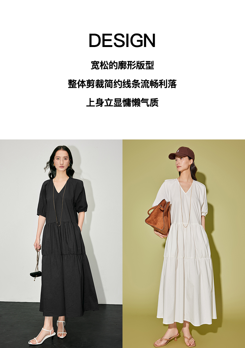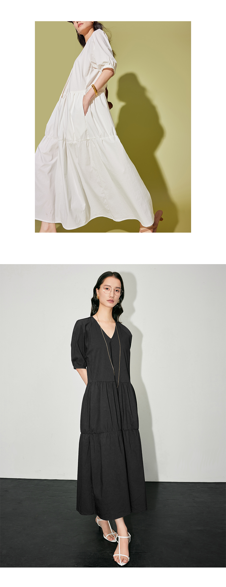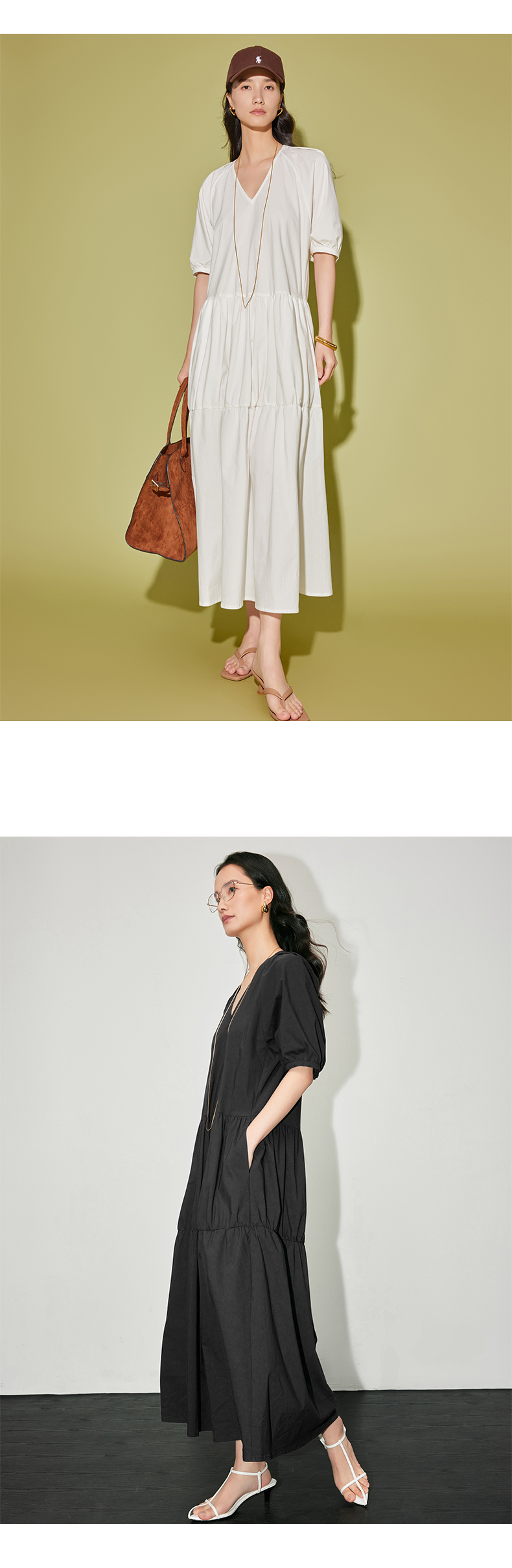 IN AND ON 棉麻高密微弹 气质廓形打皱连衣裙 53435