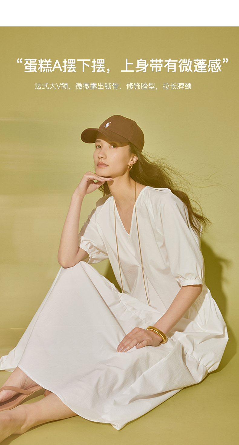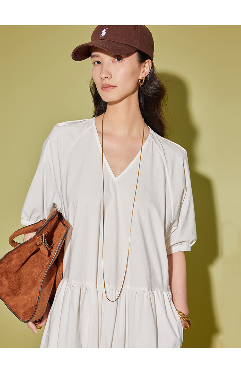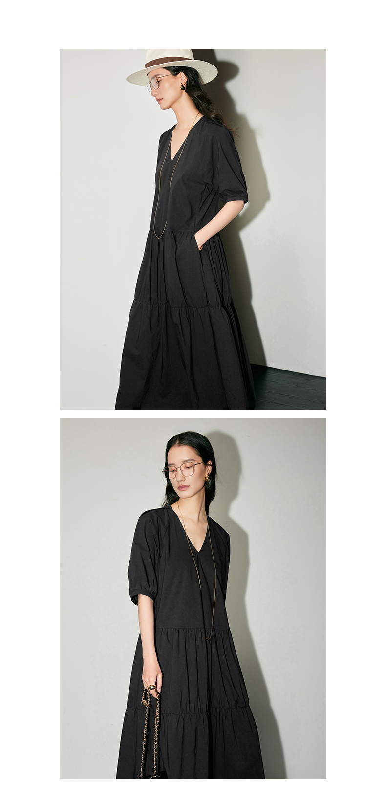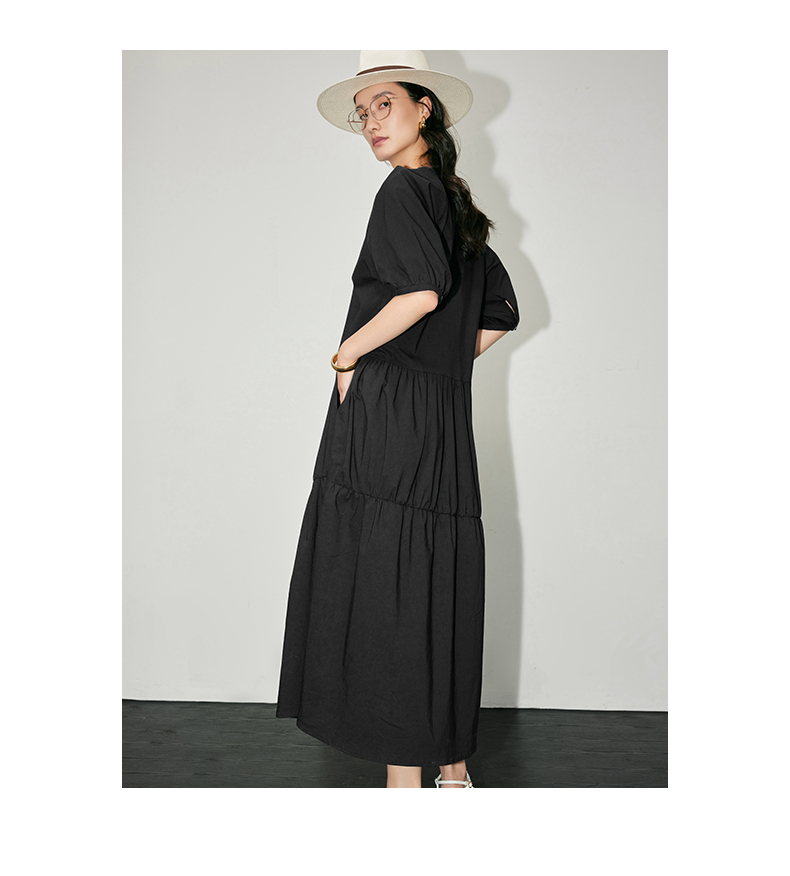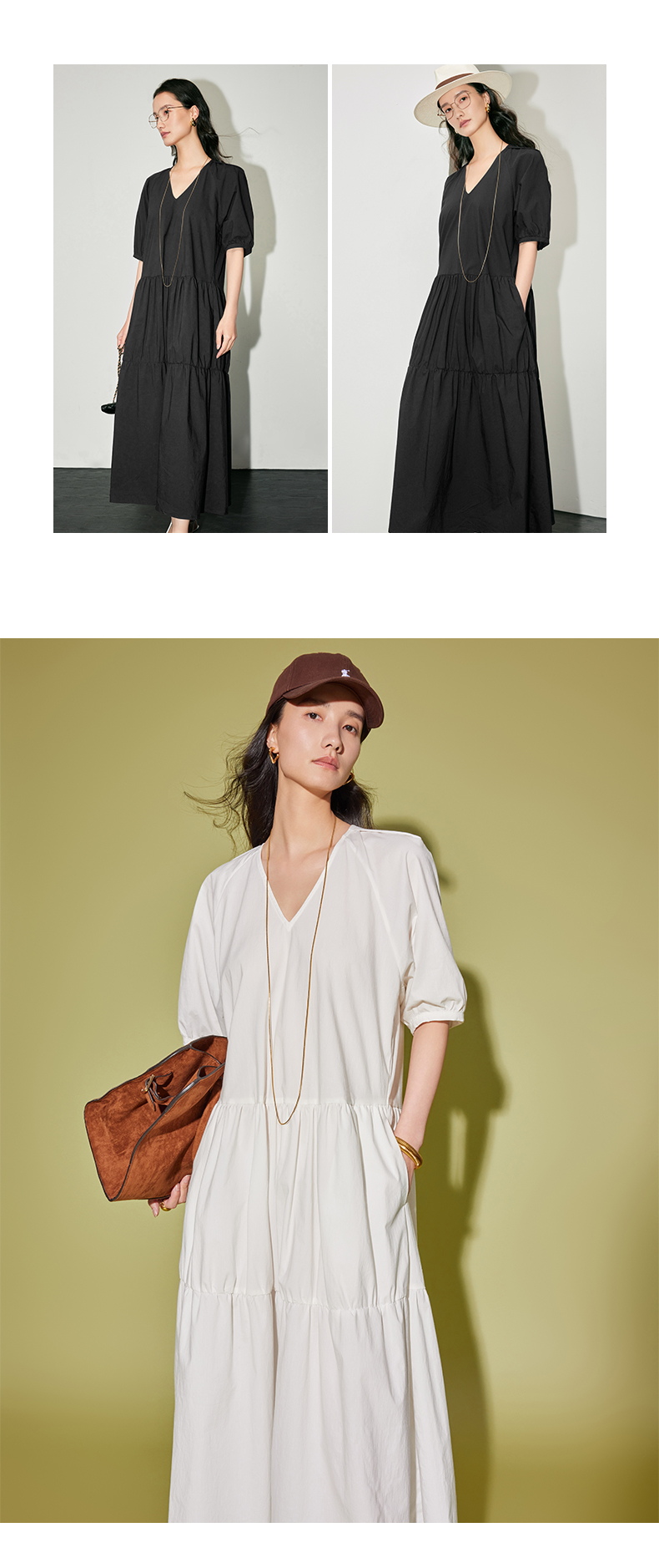 IN AND ON 棉麻高密微弹 气质廓形打皱连衣裙 53435