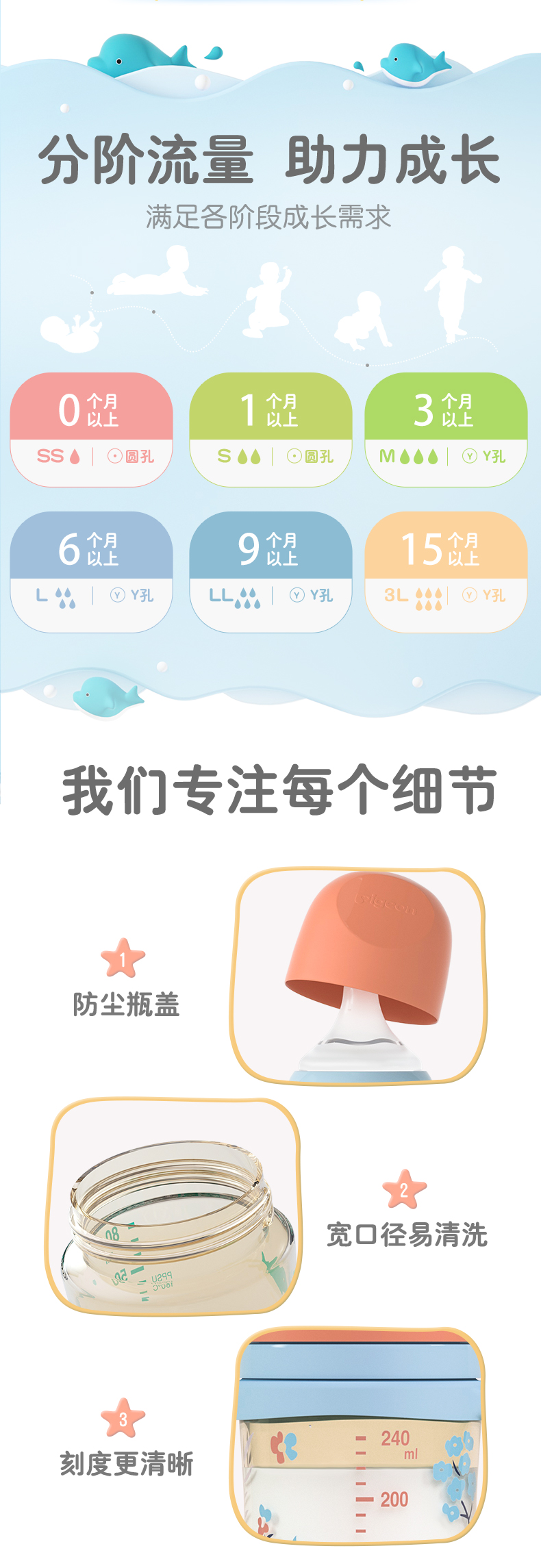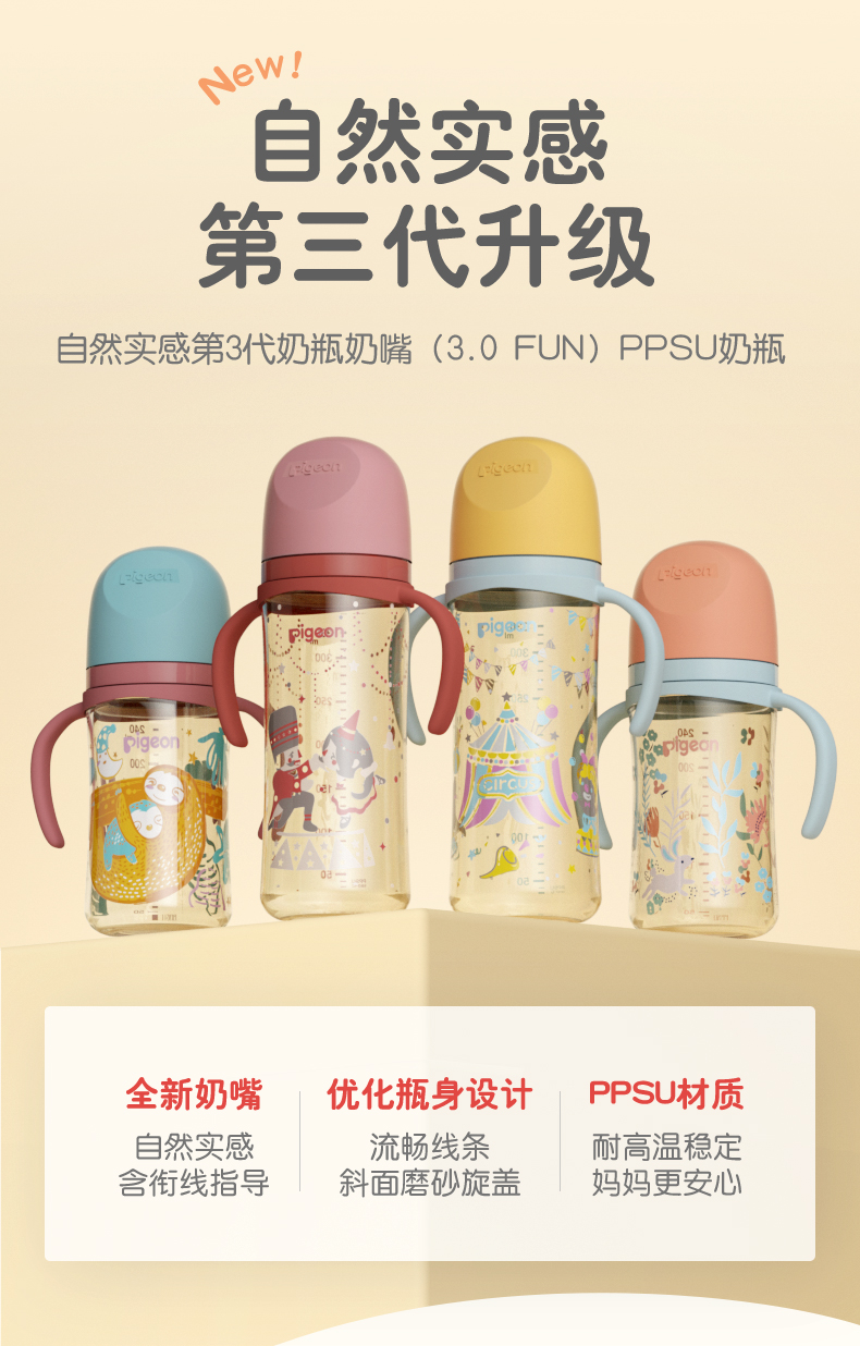 Pigeon贝亲自然实感Ⅲ宽口径彩绘PPSU双把手奶瓶