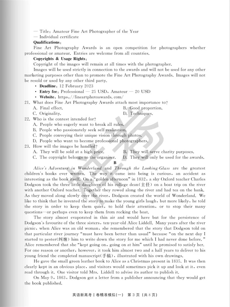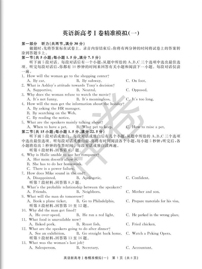 书名:新高考I卷精准模拟(英语)
