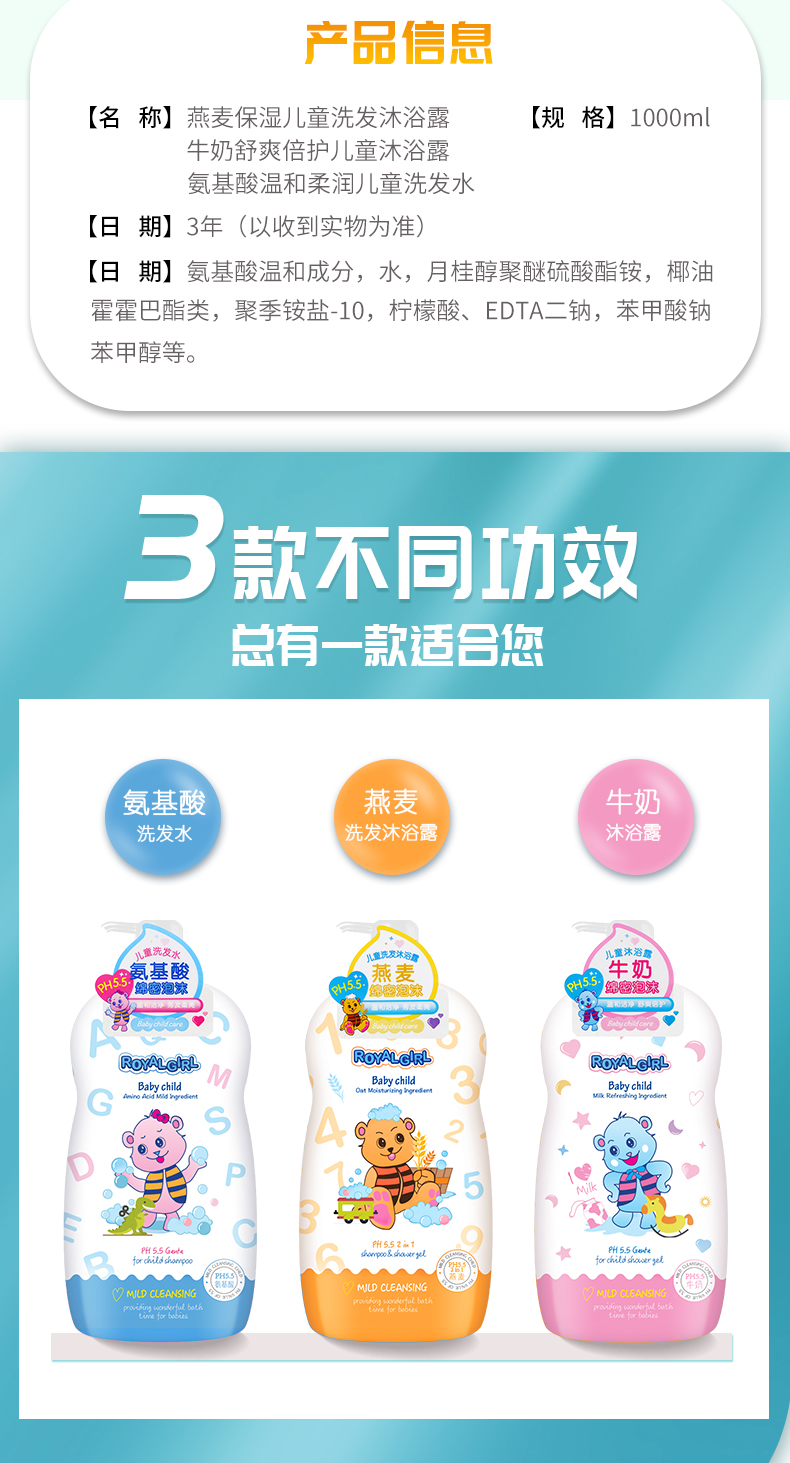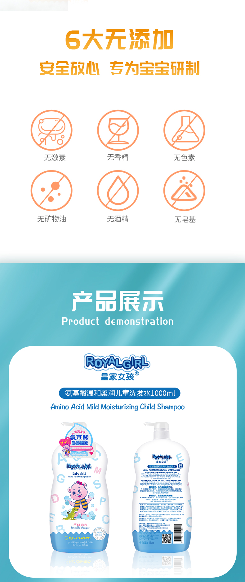 【门店直发 支持同城配送】皇家女孩儿童洗发/沐浴露1kg/瓶