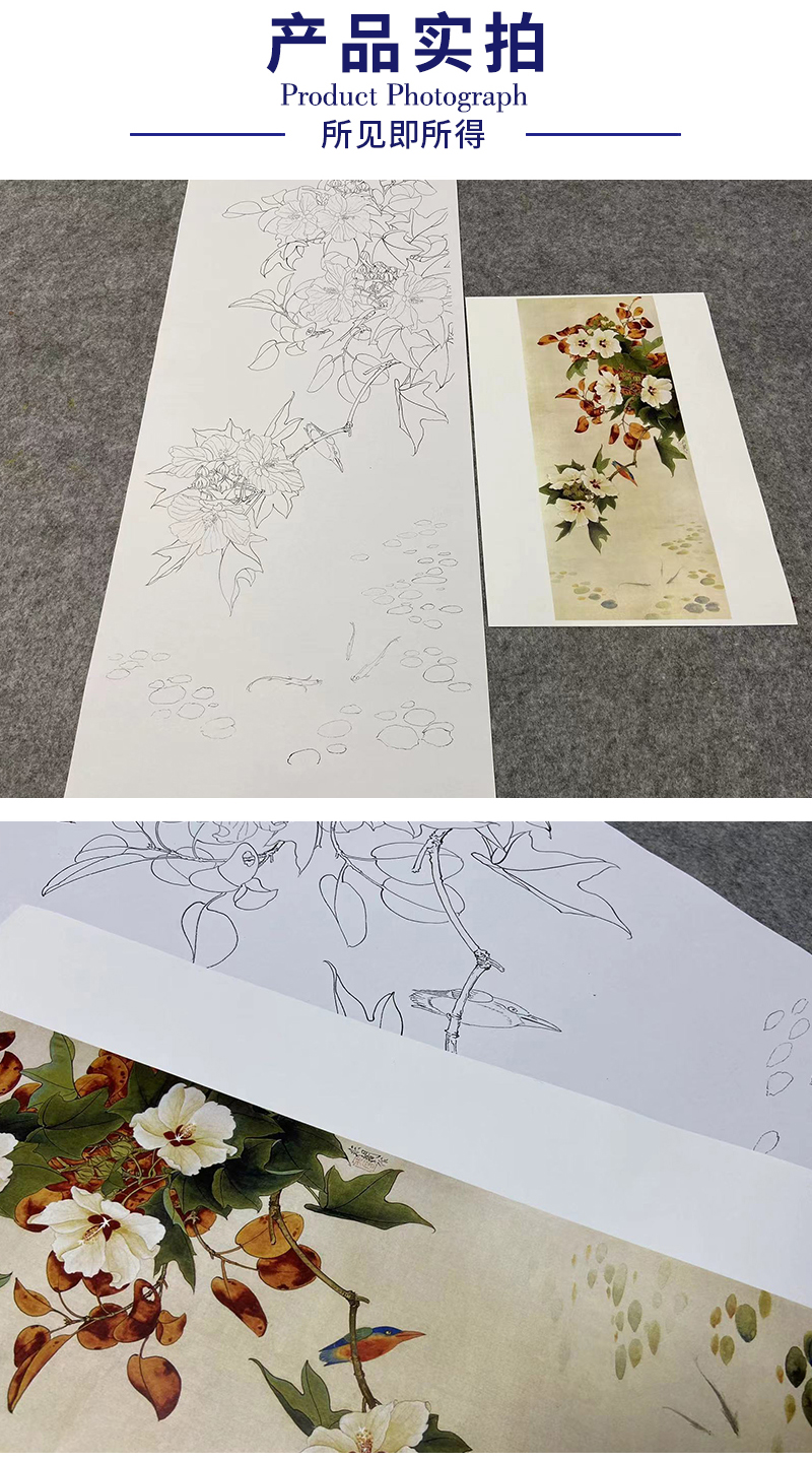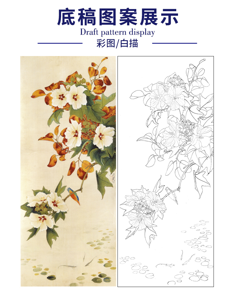 于非闇竖幅工笔花鸟白描底稿-翠鸟芙蓉花YF10