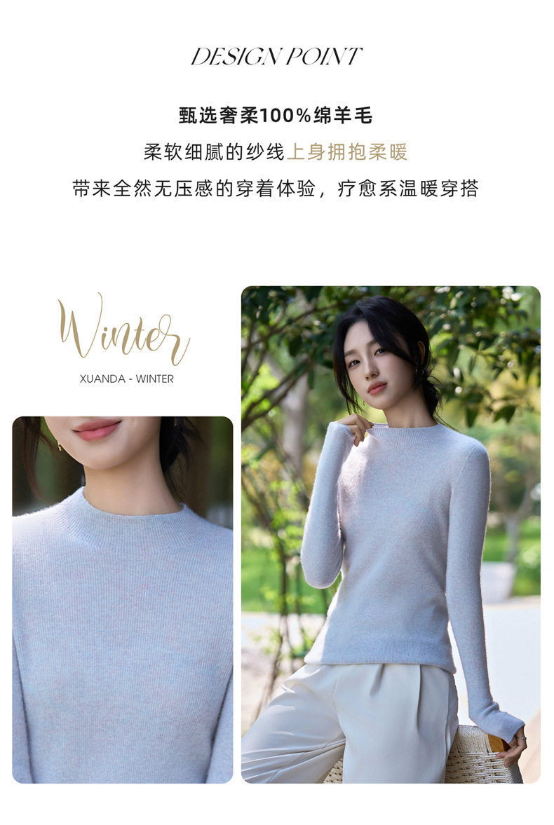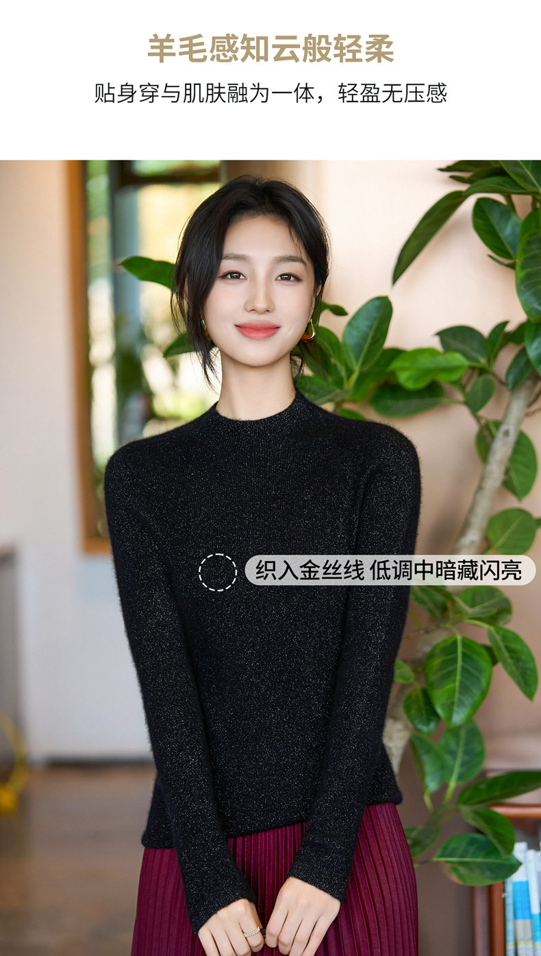 「自」全新升级【铂金会员183/天猫249/差价66】(11020)洛诗琳气质无缝羊毛衫2025秋冬金银丝半高领抽条针织毛衣女