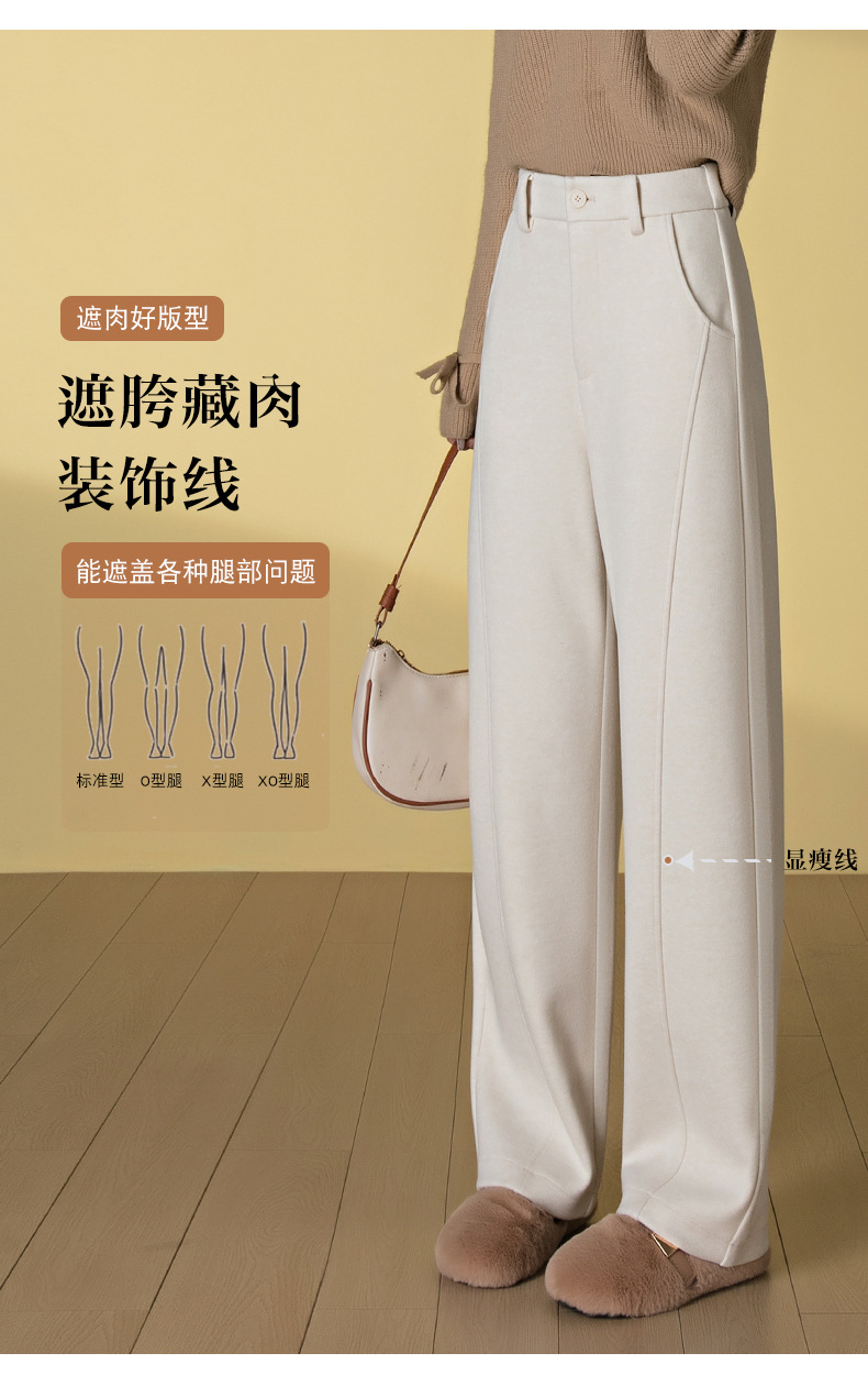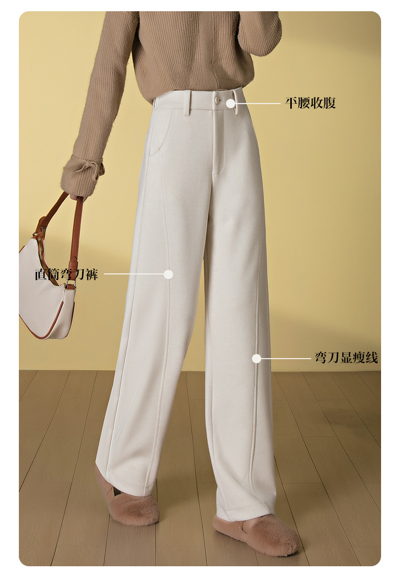 桑蚕丝羊毛呢弯刀裤女秋冬厚款美拉德色系显瘦休闲天丝窄版阔腿裤