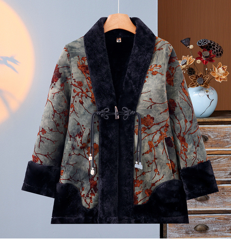 雀说冬装外套时尚阔太太加绒皮草中老年人女秋冬皮毛一体大衣ALW2470