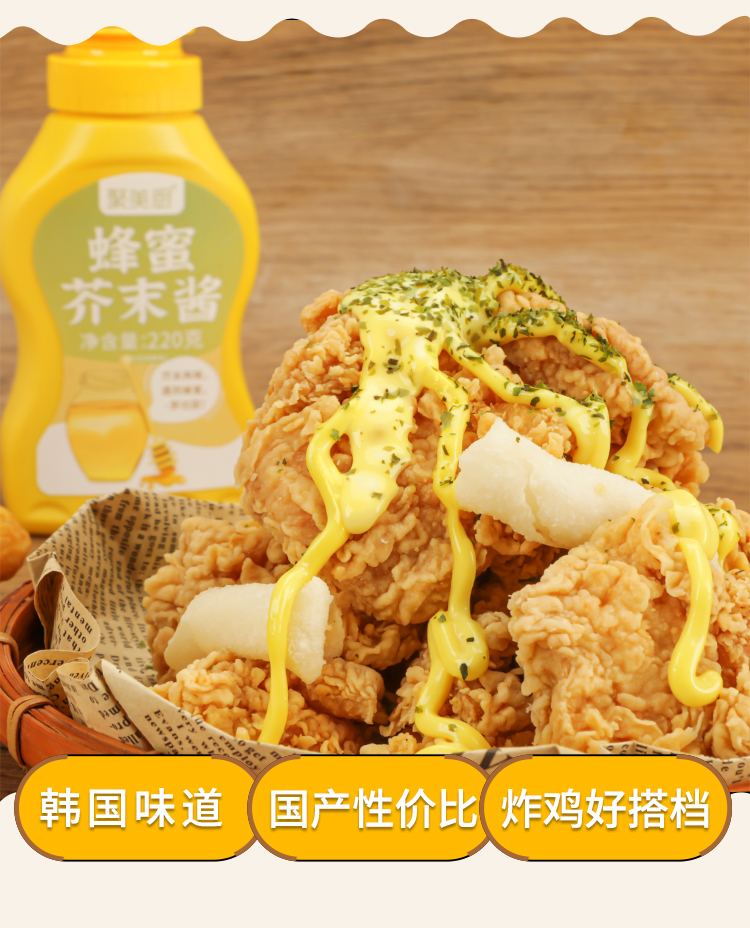聚美厨韩式蜂蜜芥末酱挤压瓶装寿司炸鸡酱汉堡热狗酱料沙拉披萨酱