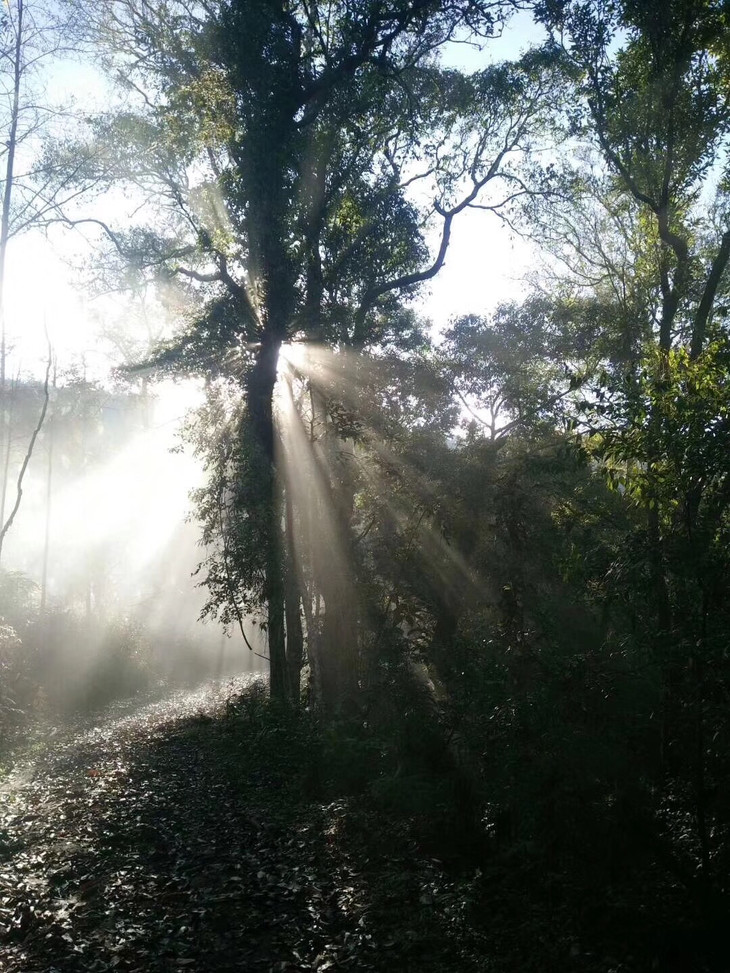 易武片区内质丰厚的古树茶大多散布于荒生林中,茶树与周边深林共生,森林茂密,茶树为获取阳光向上生长,高杆如电线杆状。