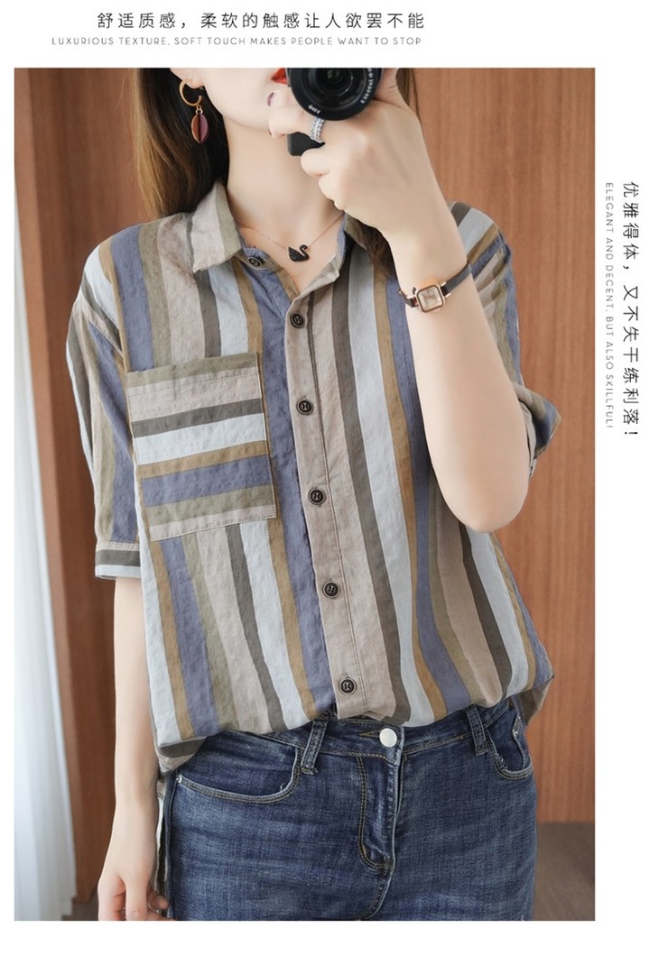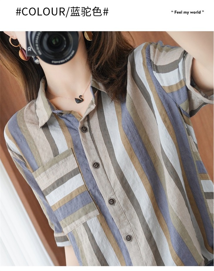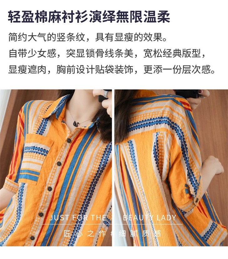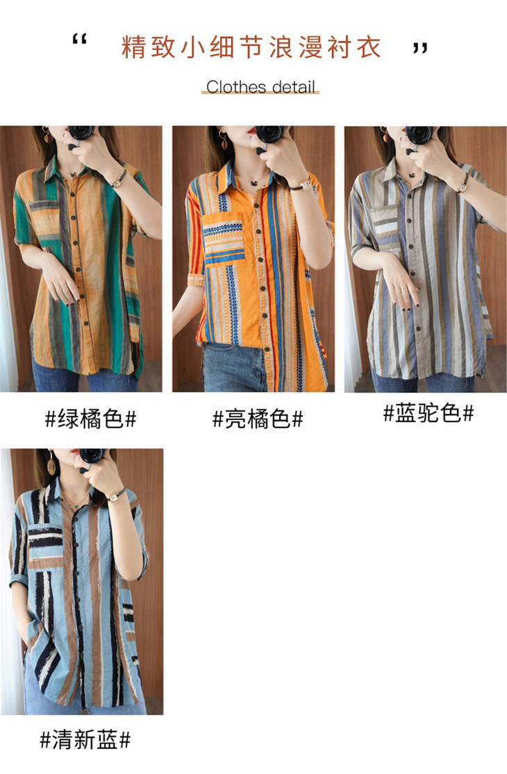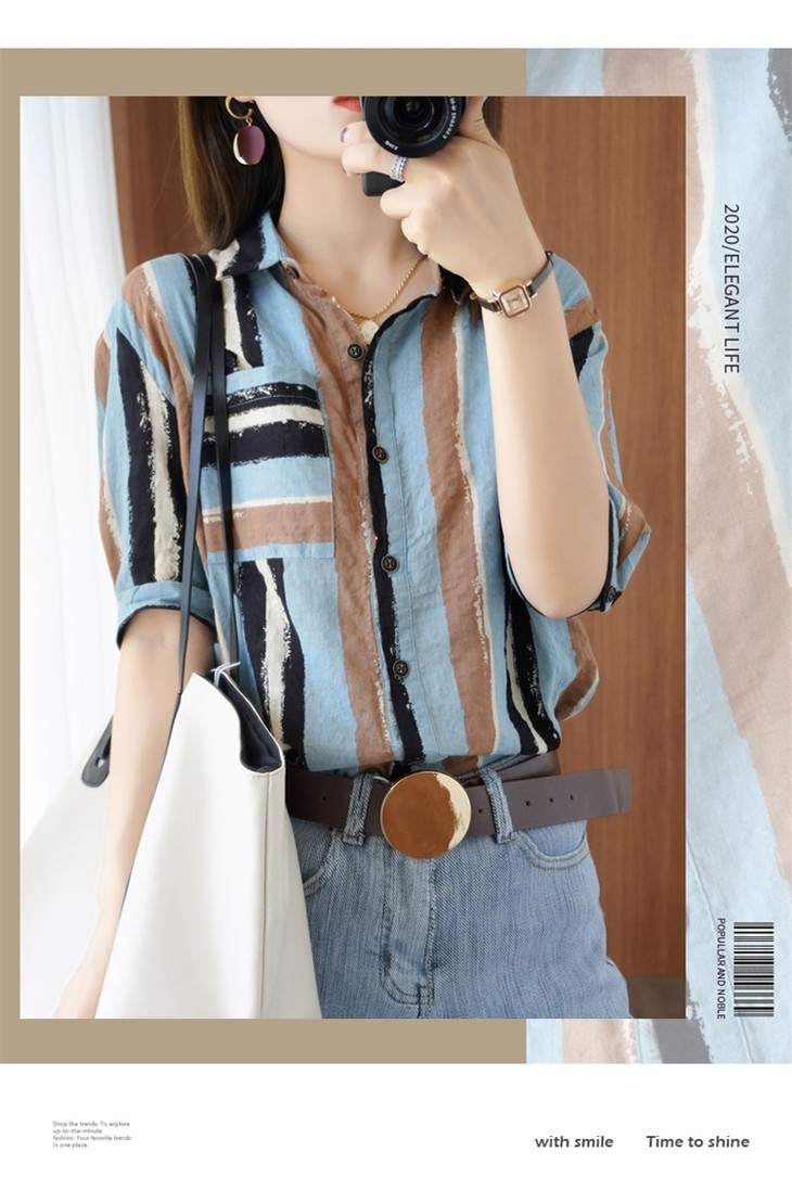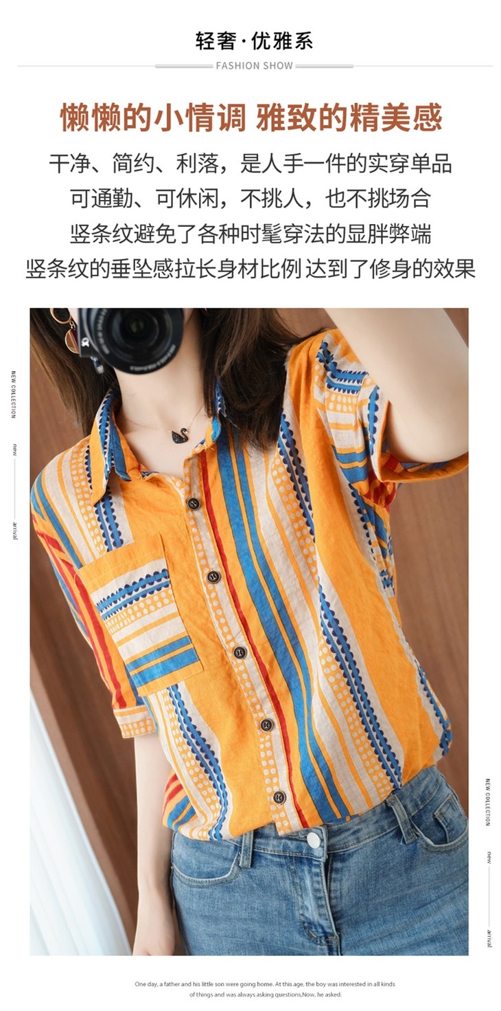 JH-1236夏新款小众轻熟薄款竖条纹短袖上衣