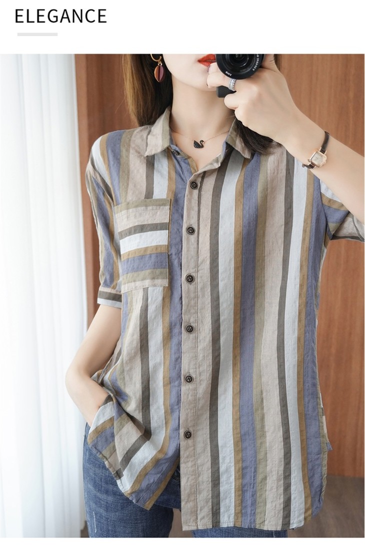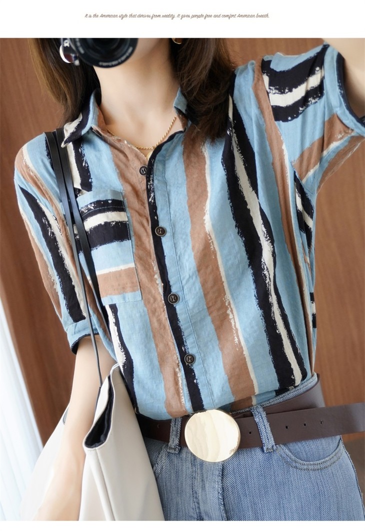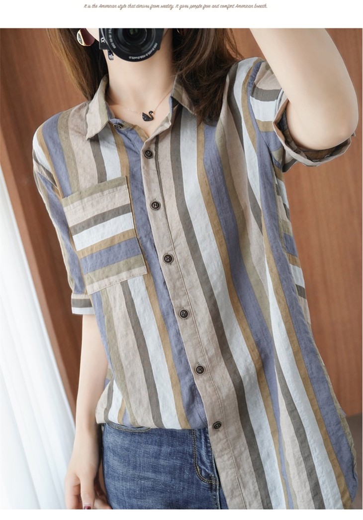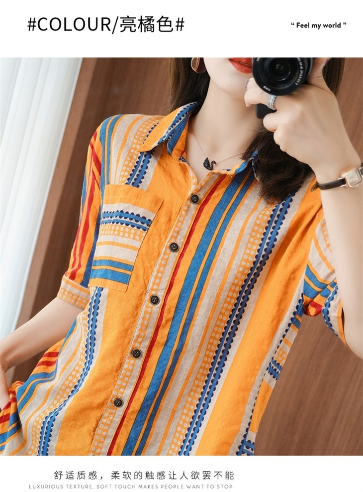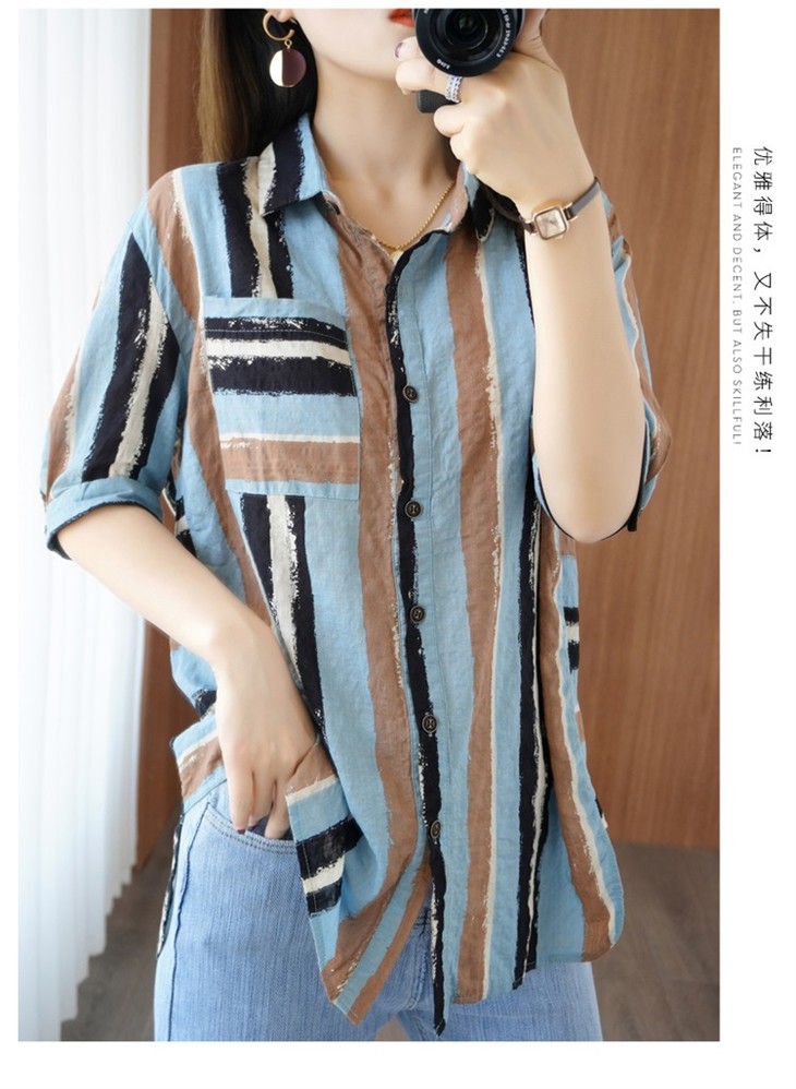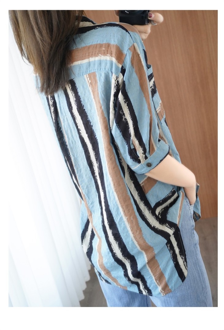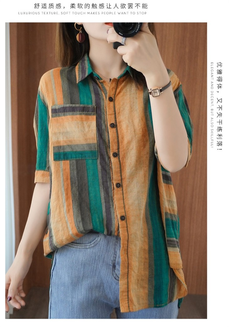 JH-1236夏新款小众轻熟薄款竖条纹短袖上衣
