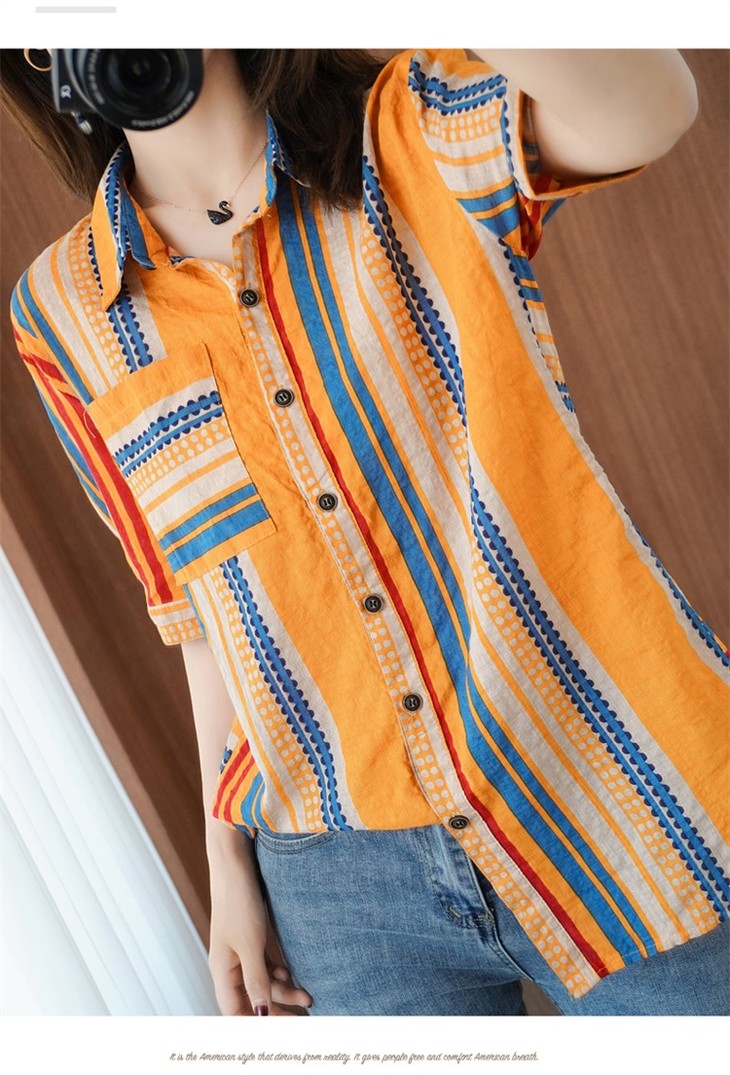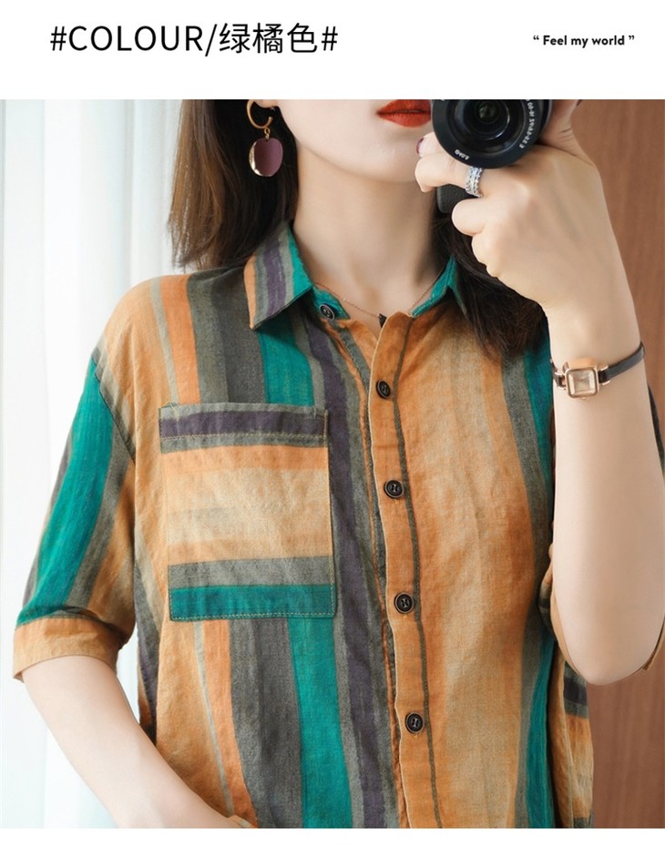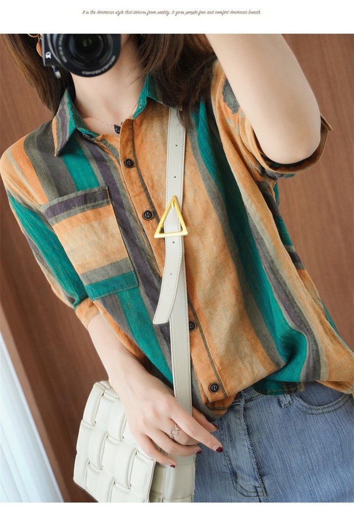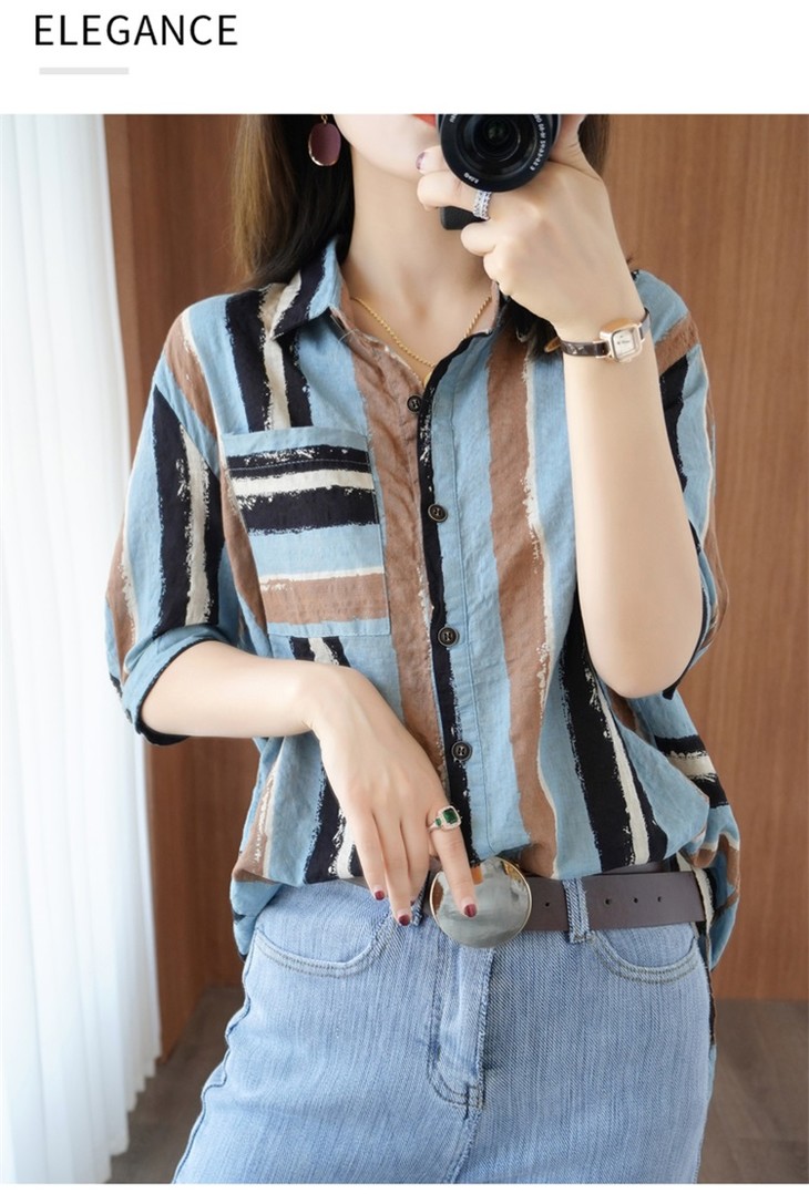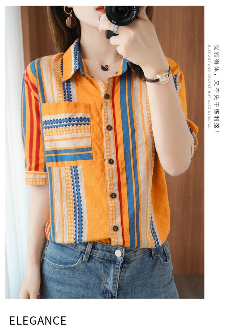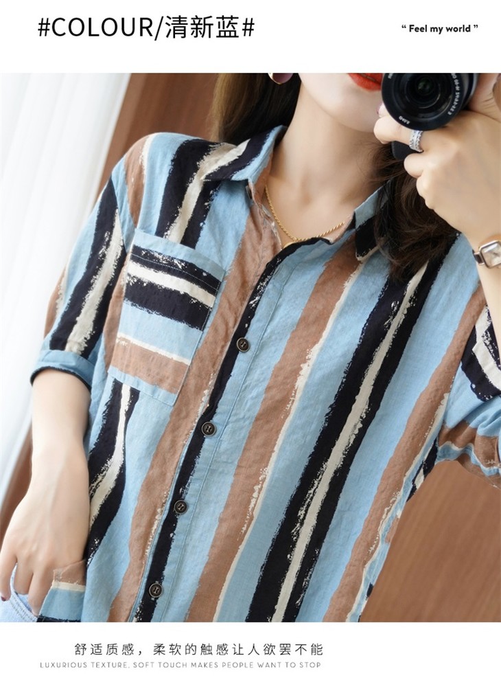 JH-1236夏新款小众轻熟薄款竖条纹短袖上衣