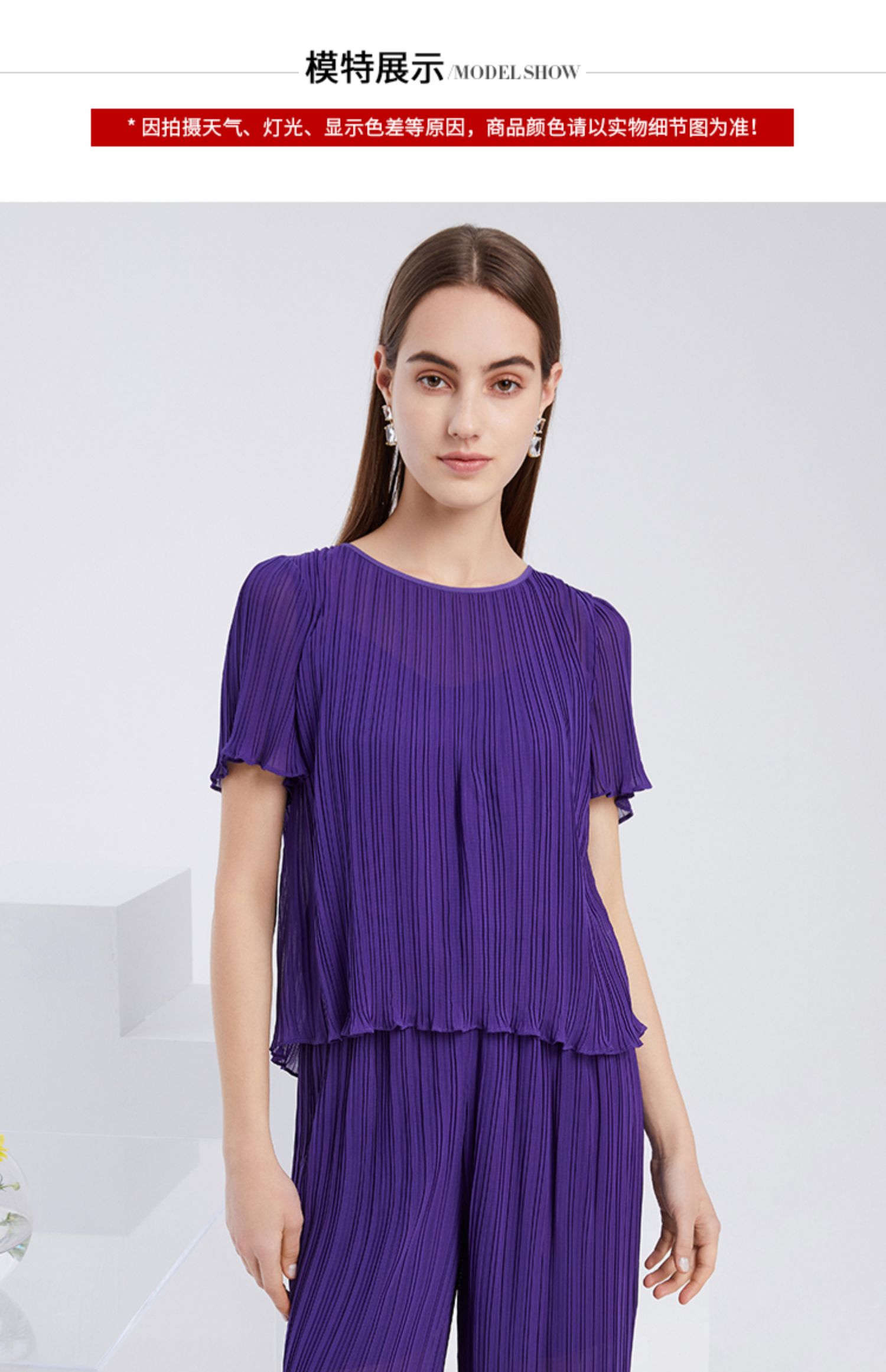 EITIE爱特爱夏季新款宽松舒适显瘦百搭压褶直筒小上衣女6213911