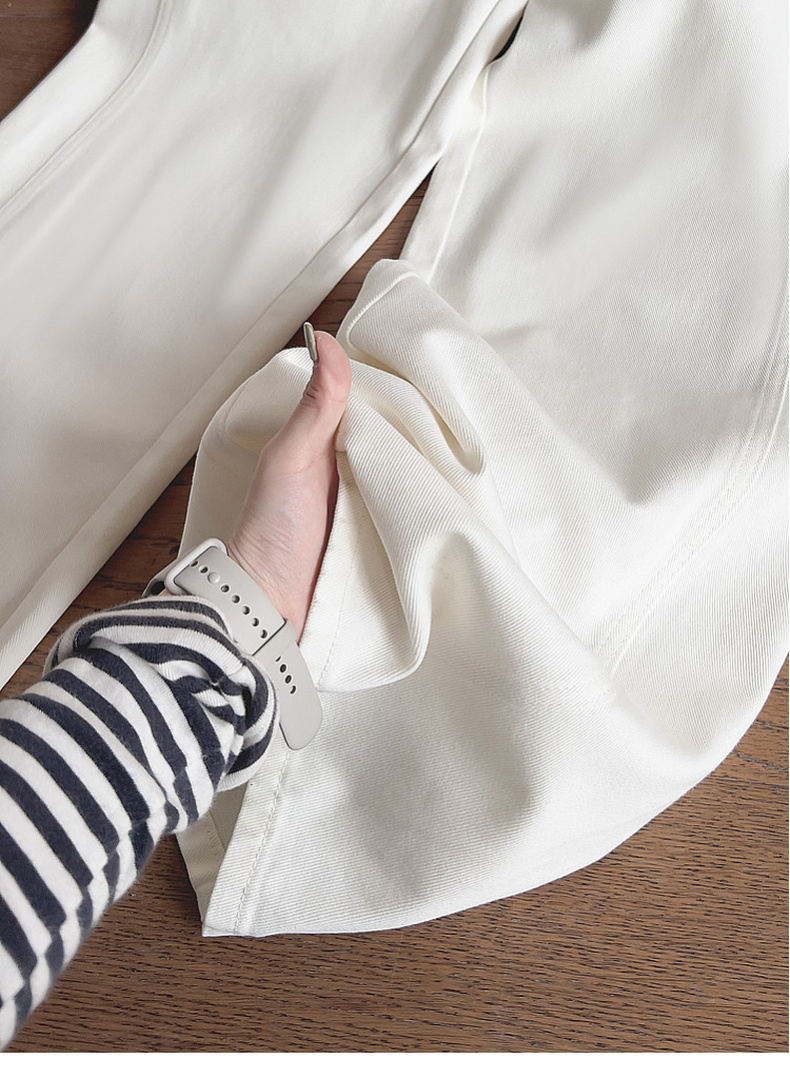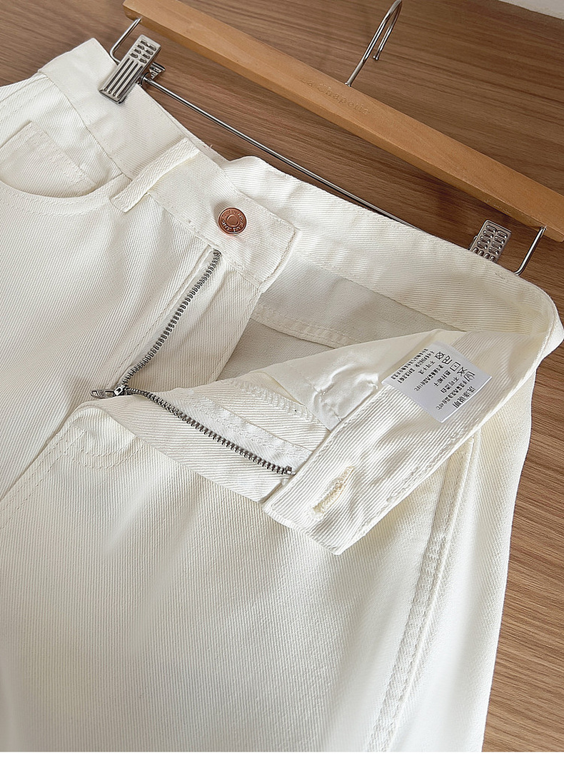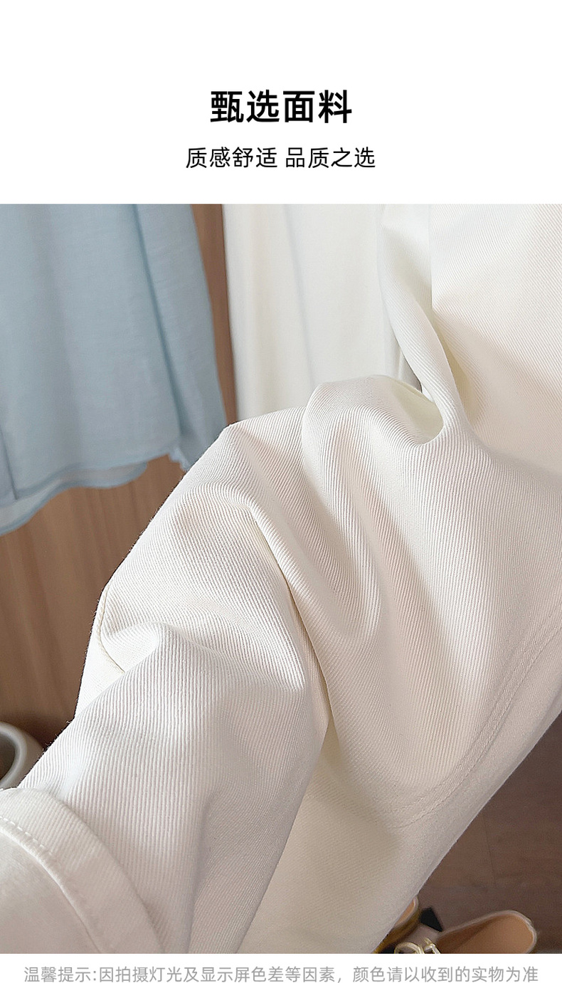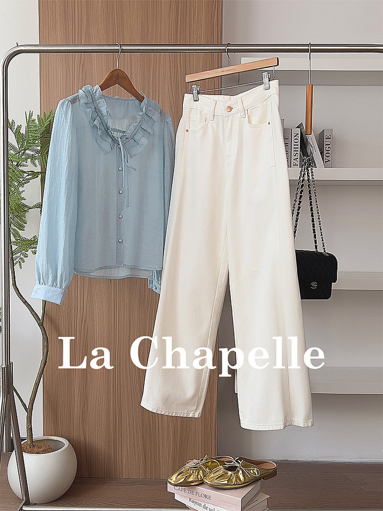专柜实拍【露丝同款】拉夏贝尔/La Chapelle质感牛仔!复古单扣口袋后撞色标直筒阔腿白色净版牛仔裤