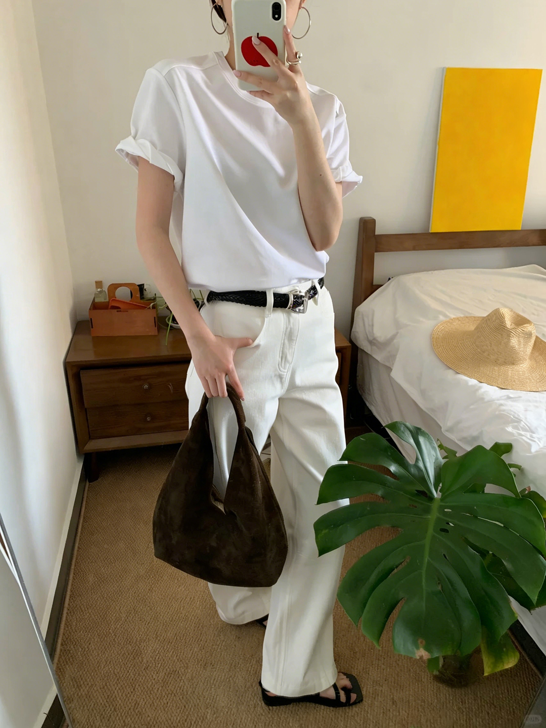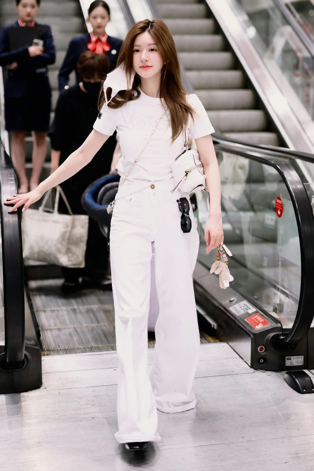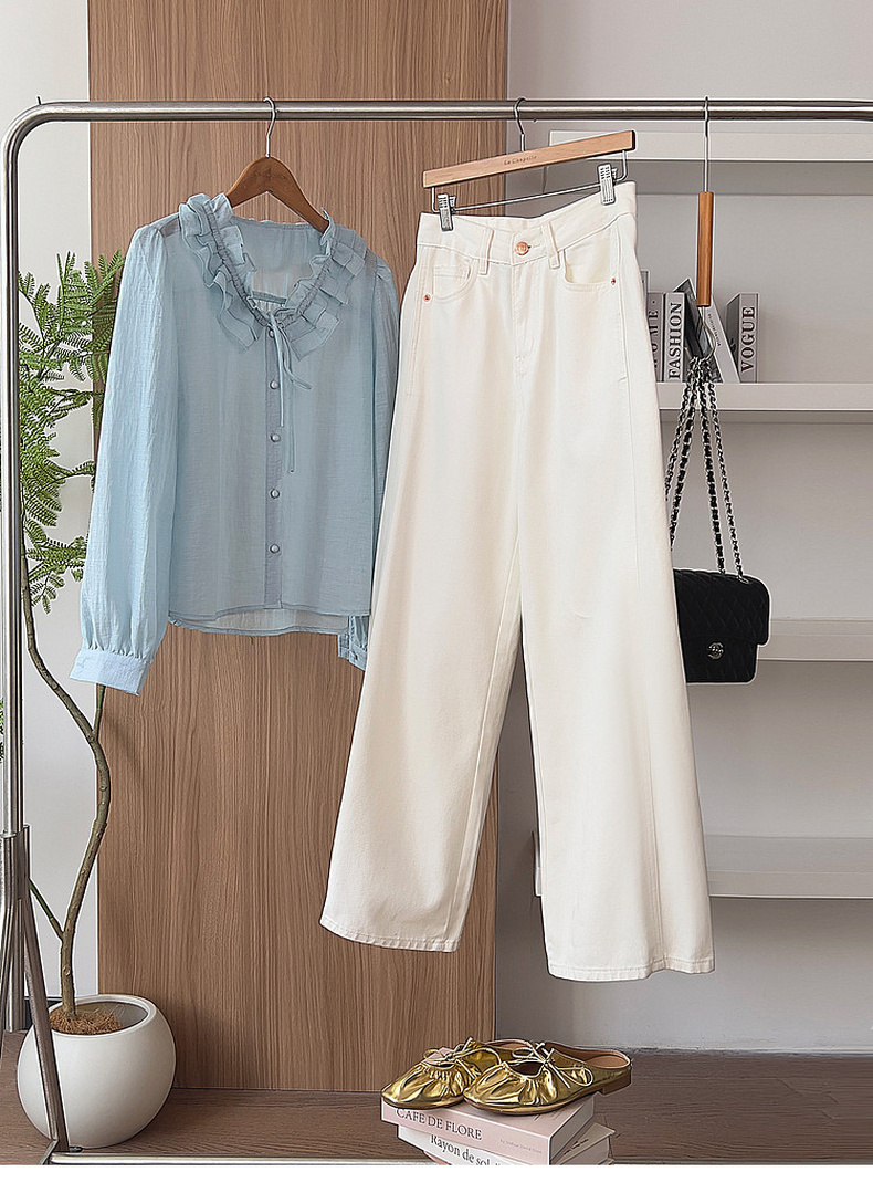 专柜实拍【露丝同款】拉夏贝尔/La Chapelle质感牛仔!复古单扣口袋后撞色标直筒阔腿白色净版牛仔裤