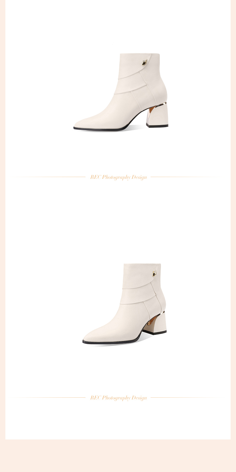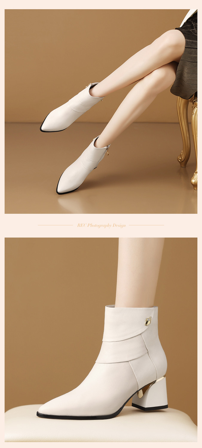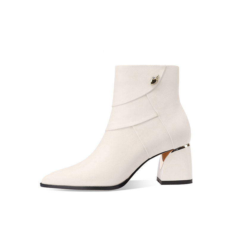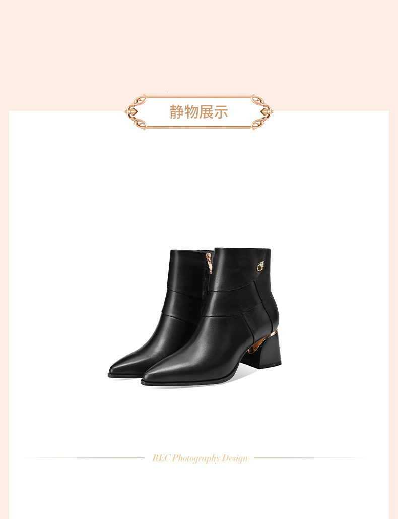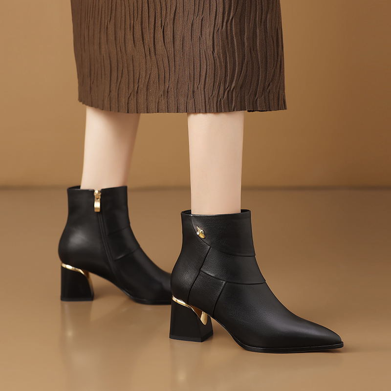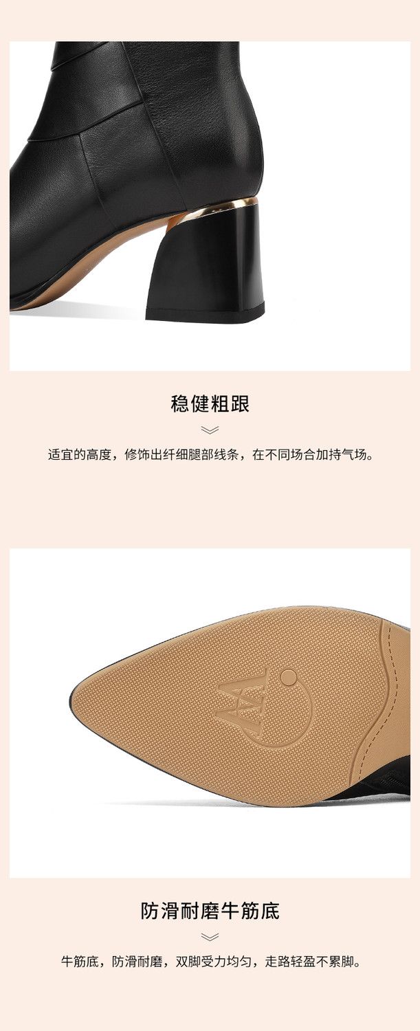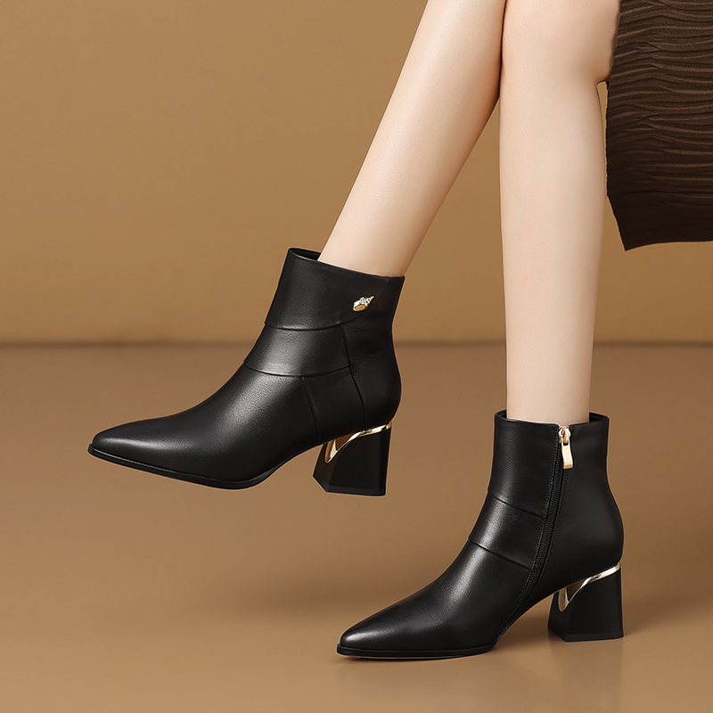 【预售5天】真皮粗跟短靴女新款秋冬单靴时尚百搭中跟侧拉链软皮时装靴HY&H3745