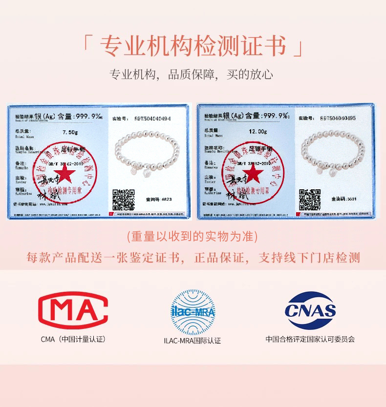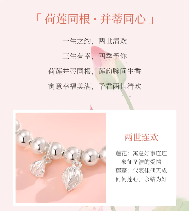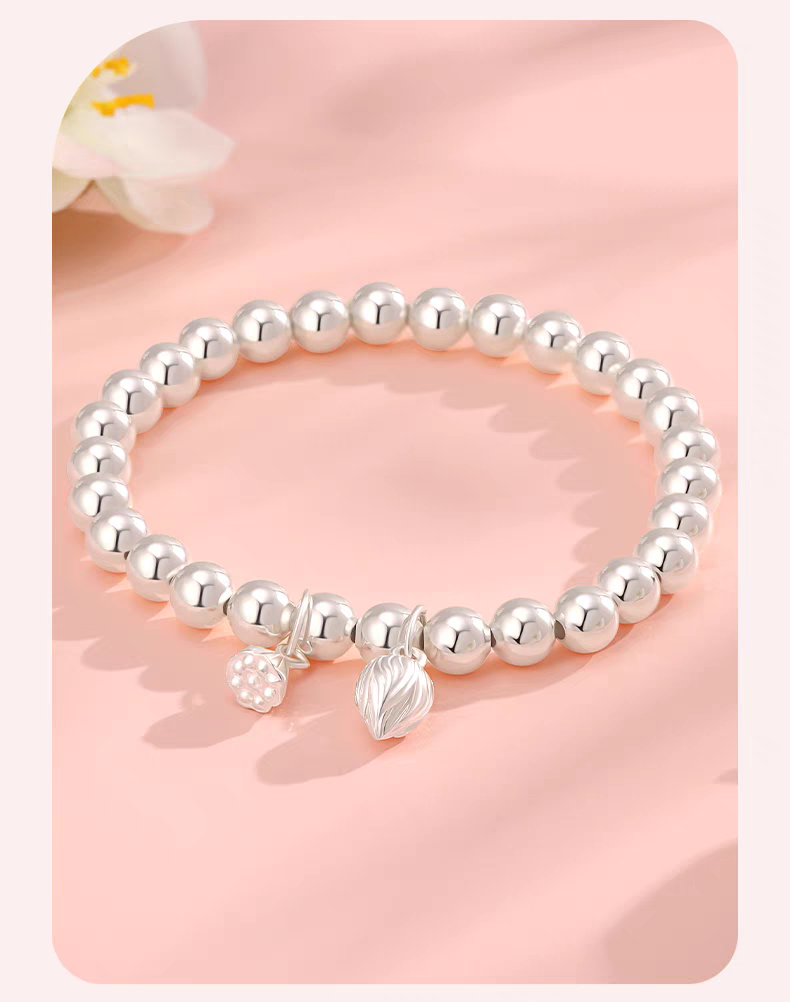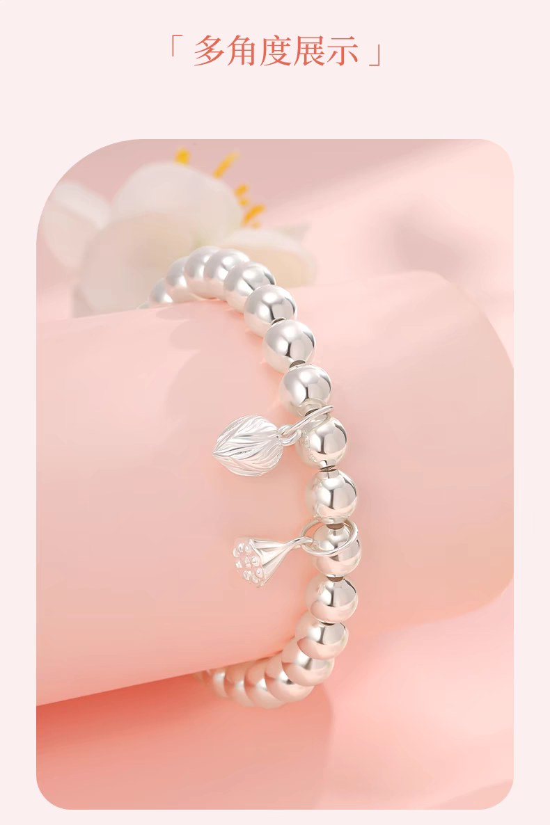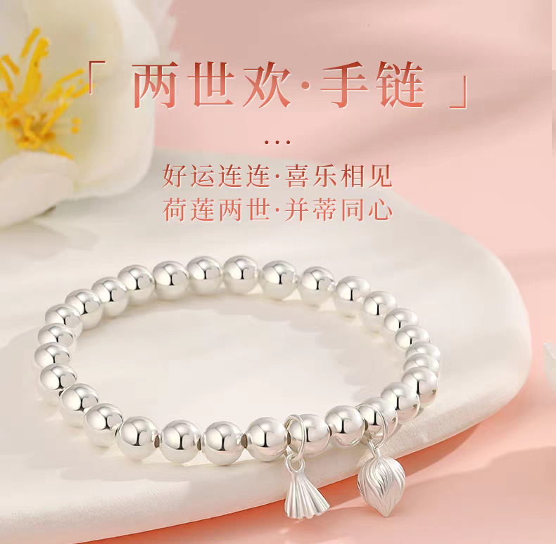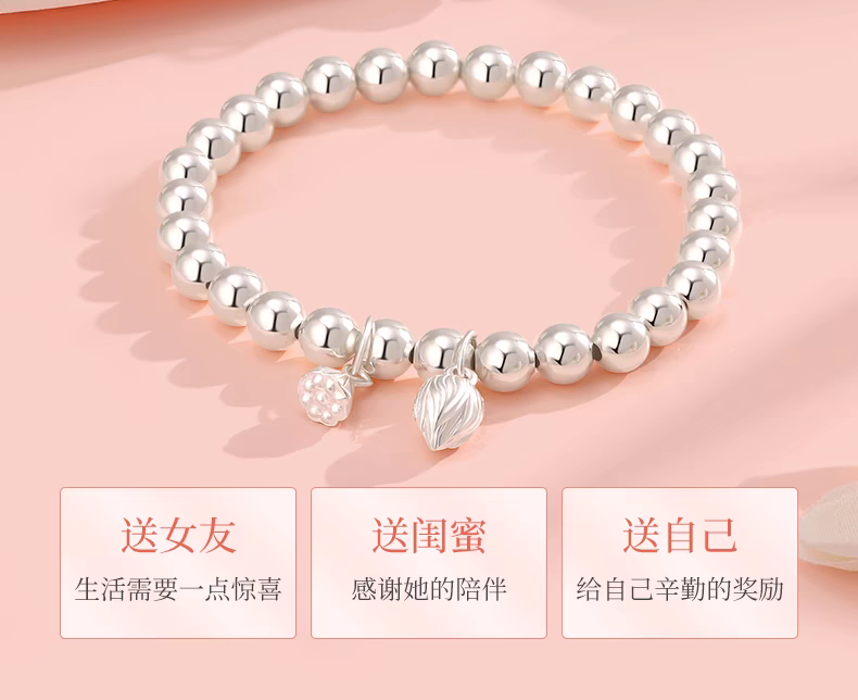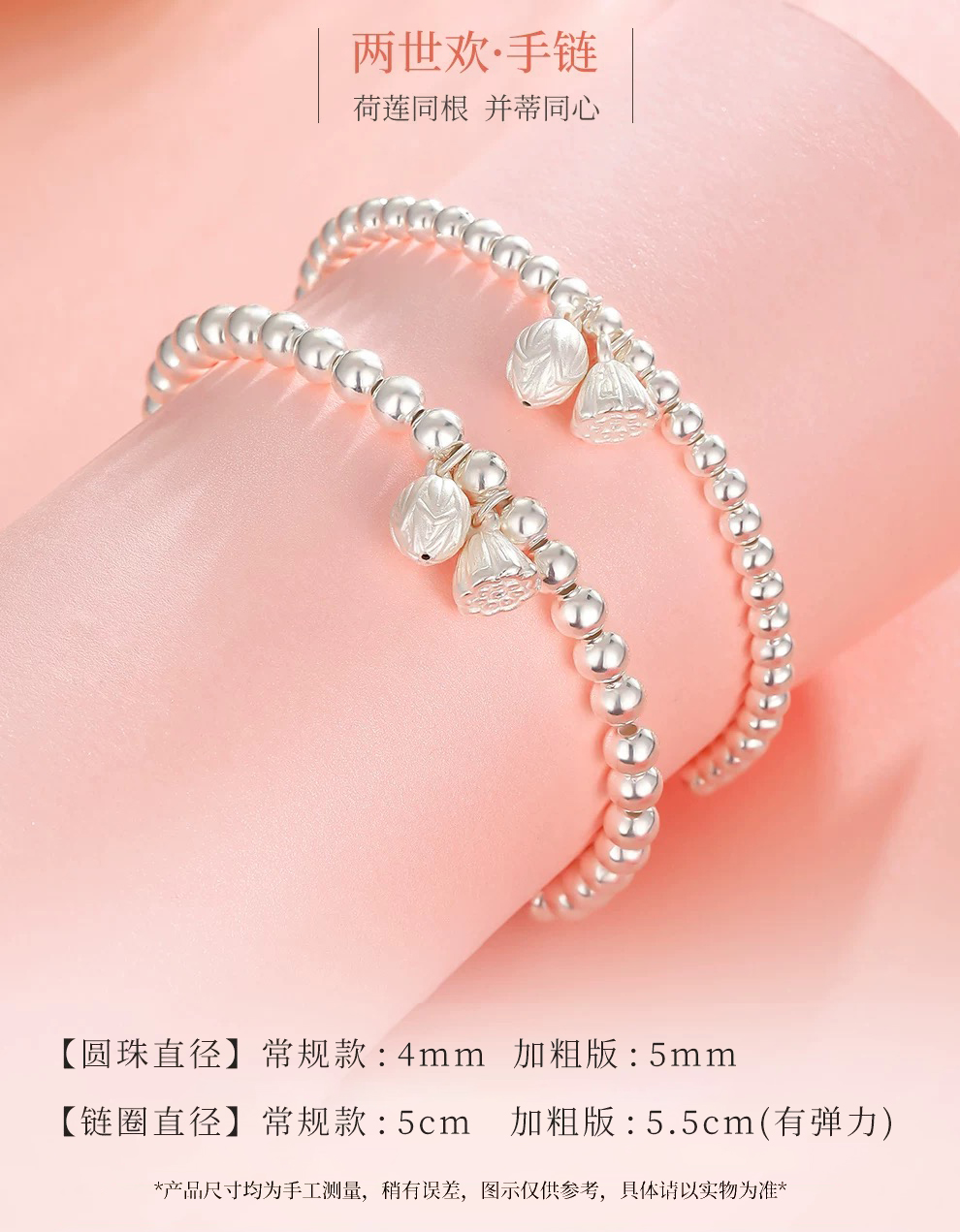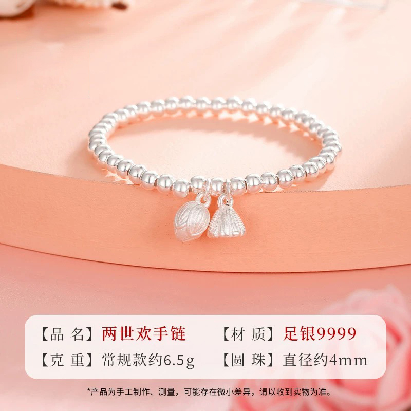 【520限定】两世欢999足银 纯银手链轻奢转运珠银手镯 礼盒装 附带检验证书