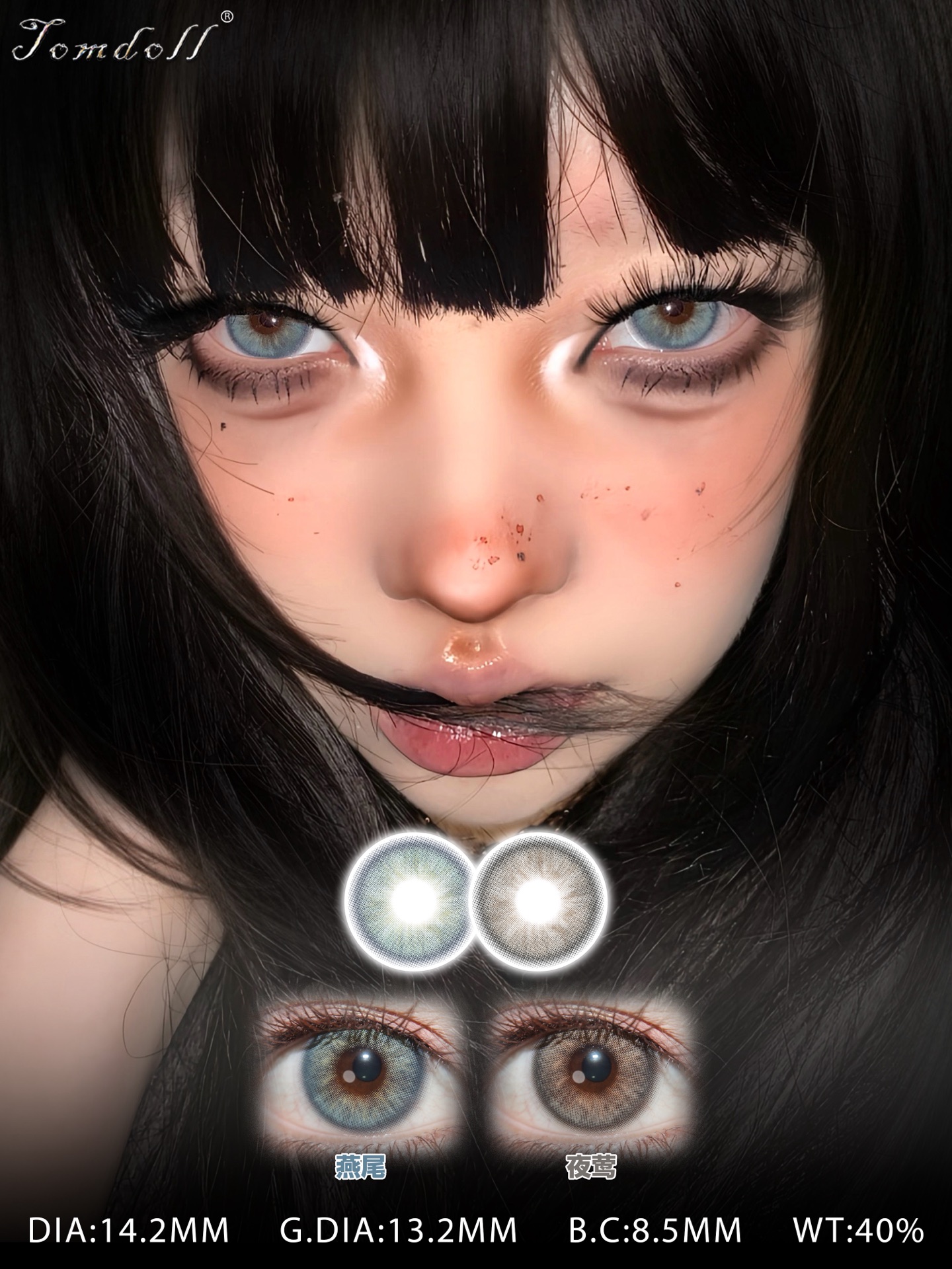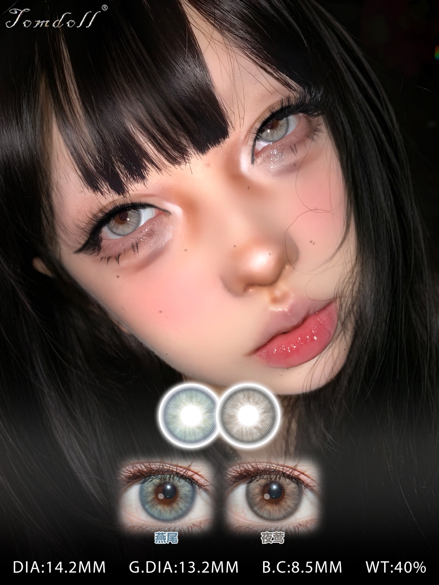 tomdoll半年抛 燕尾 蓝/夜莺/涩谷辣妹 棕灰红 14.2mm