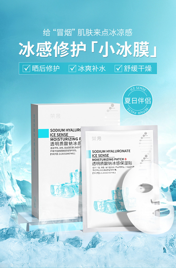 【限时大促!拍1发5】1盒5片!荣晟透明质酸钠冰感保湿贴 晒后舒缓 冰感修护 保湿补水 靓颜嫩肤