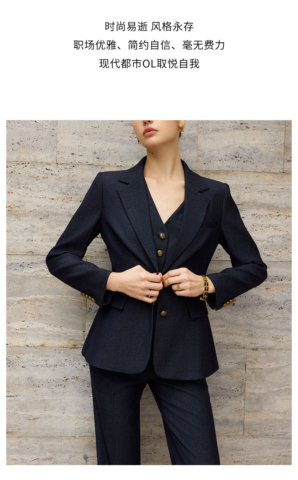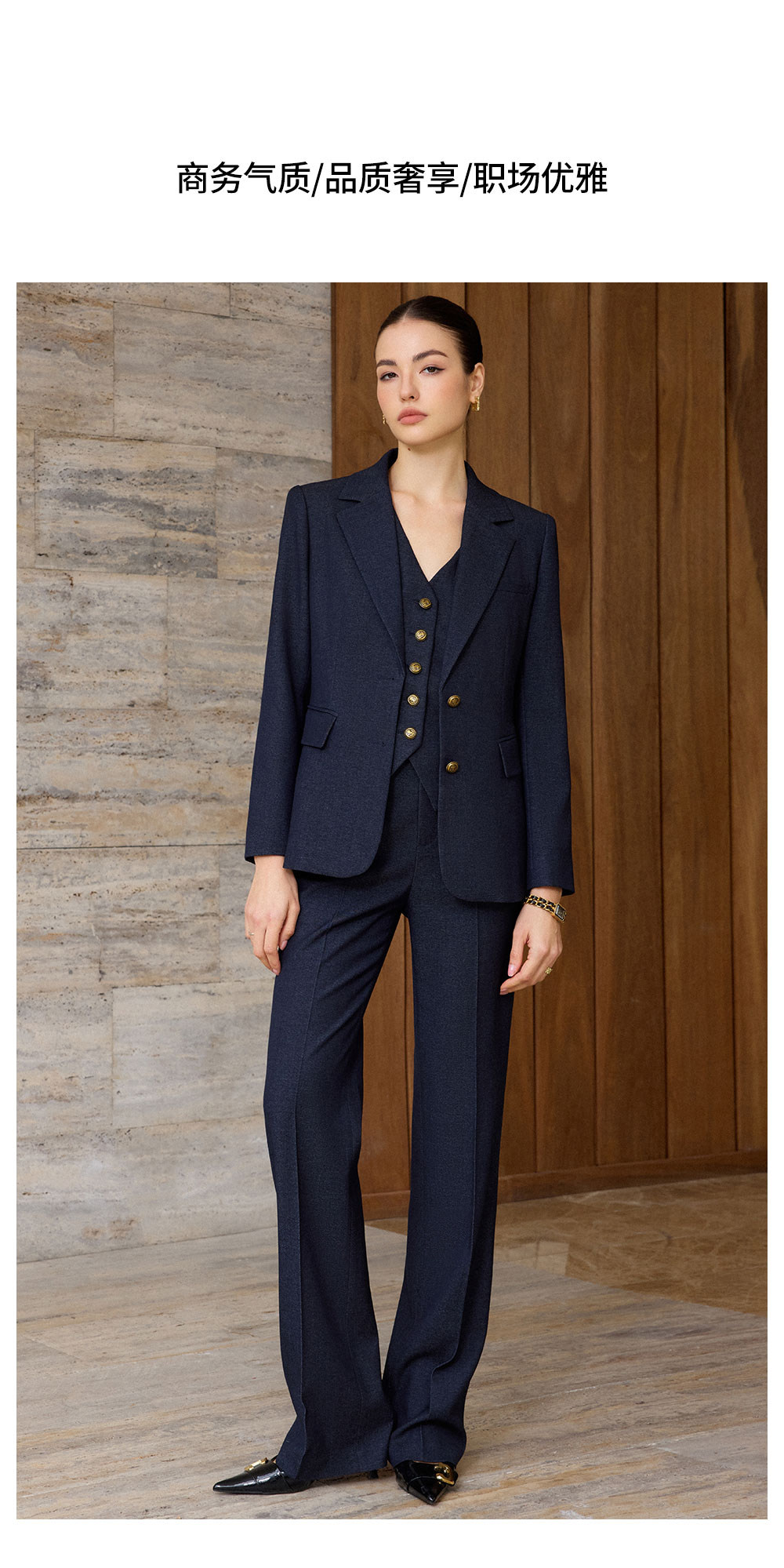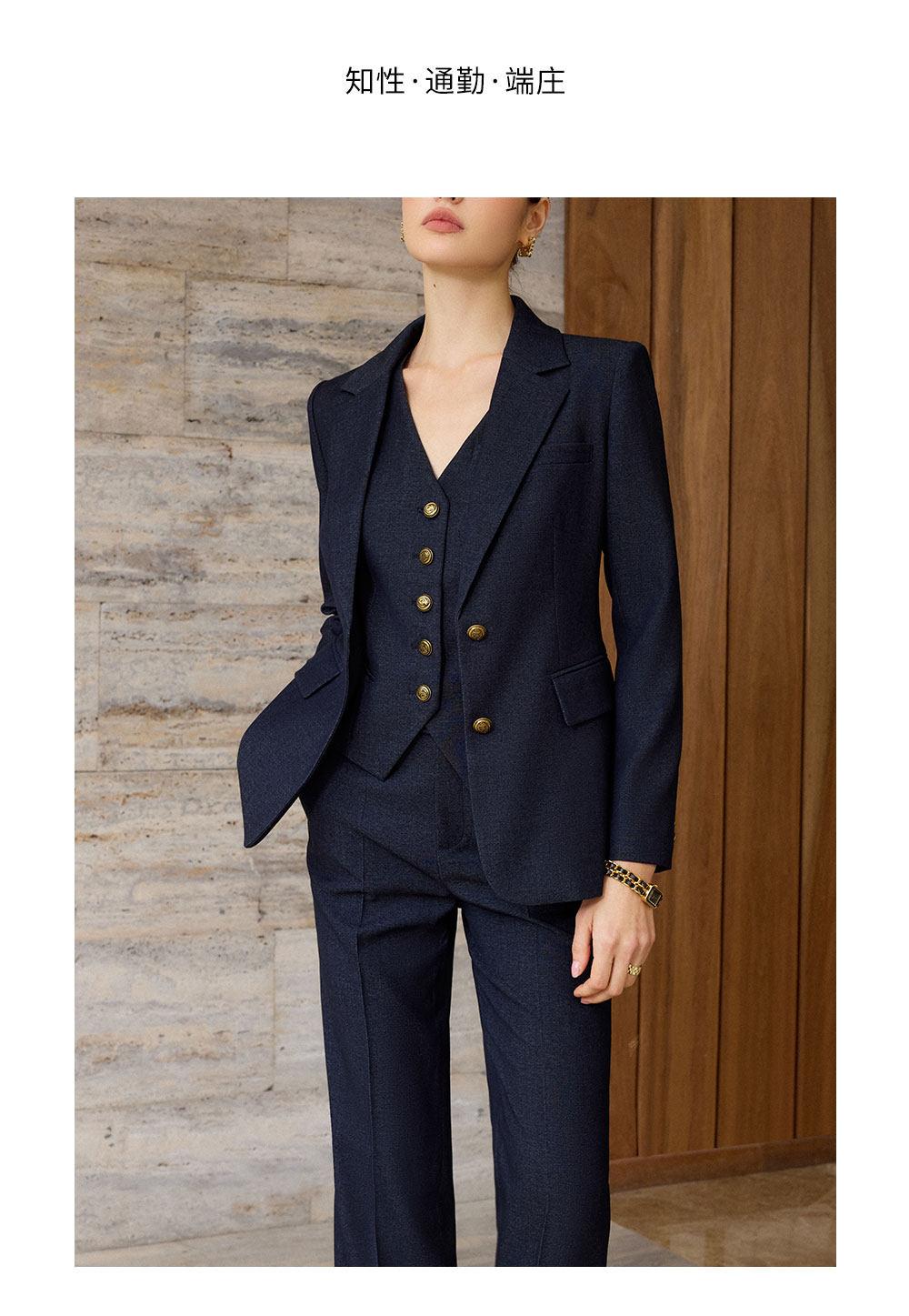 IWY/藏青色西装套装女秋冬三件套职业正装商务通勤马甲西服外套CPM2597