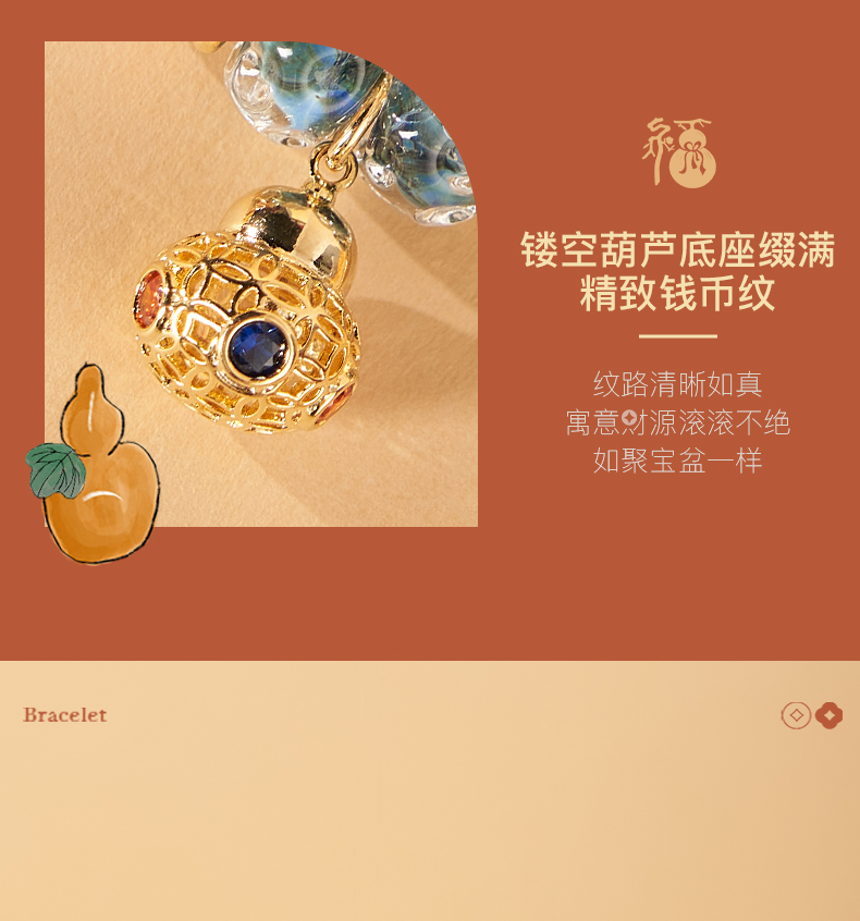 大英博物馆 东方梦境系列 糖心琉璃 聚宝盆手链