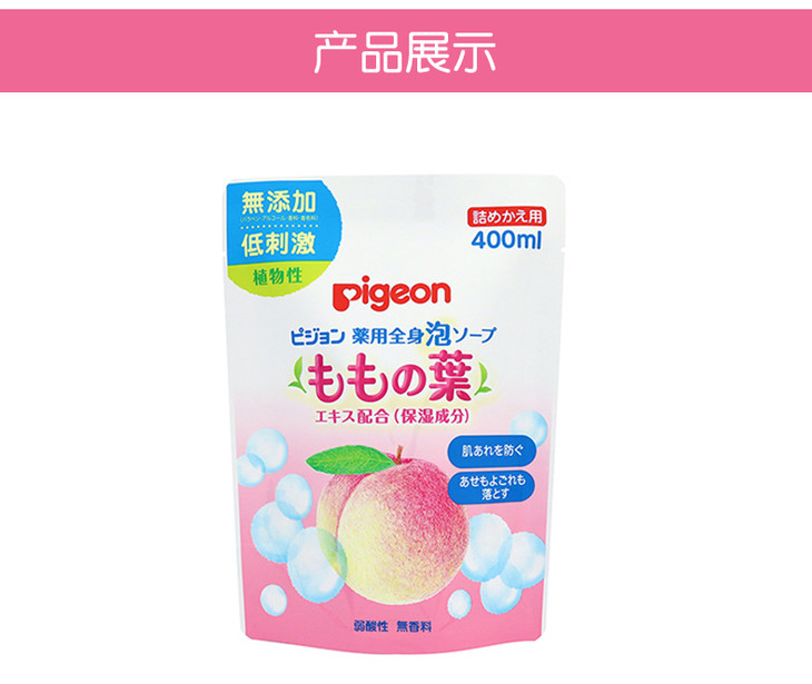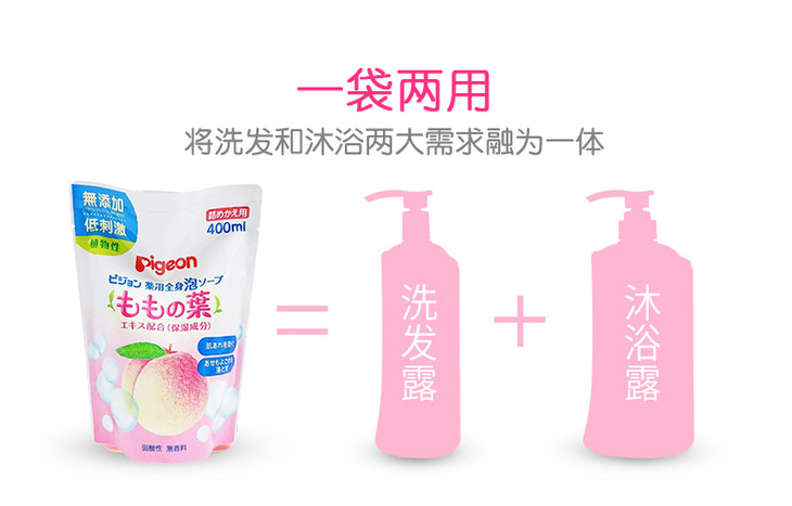 【保税仓】日本Pigeon贝亲儿童桃叶泡沫沐浴洗发二合一替换装400ml