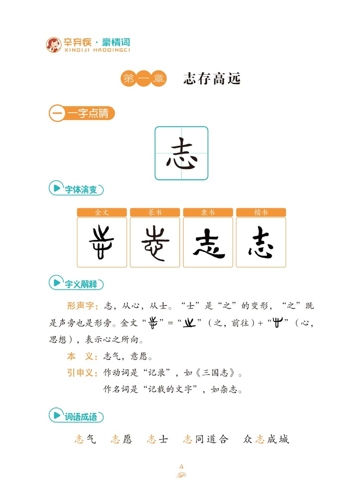 一个汉字,就是一部微型的文化史,仔细阅读“一字点睛”中的字,我们会发现这个单元的“文眼”;仔细观察“字体演变”中的字,我们会了解中国汉字的演变过程。