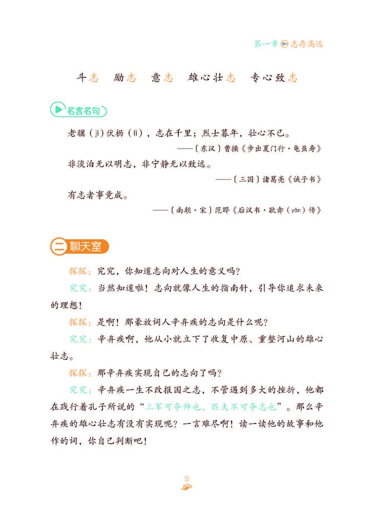 读书要注意积累语言。“字义解释”“成语积累”“名言名句”这些栏目的内容,都是我们应该积累和掌握的内容。