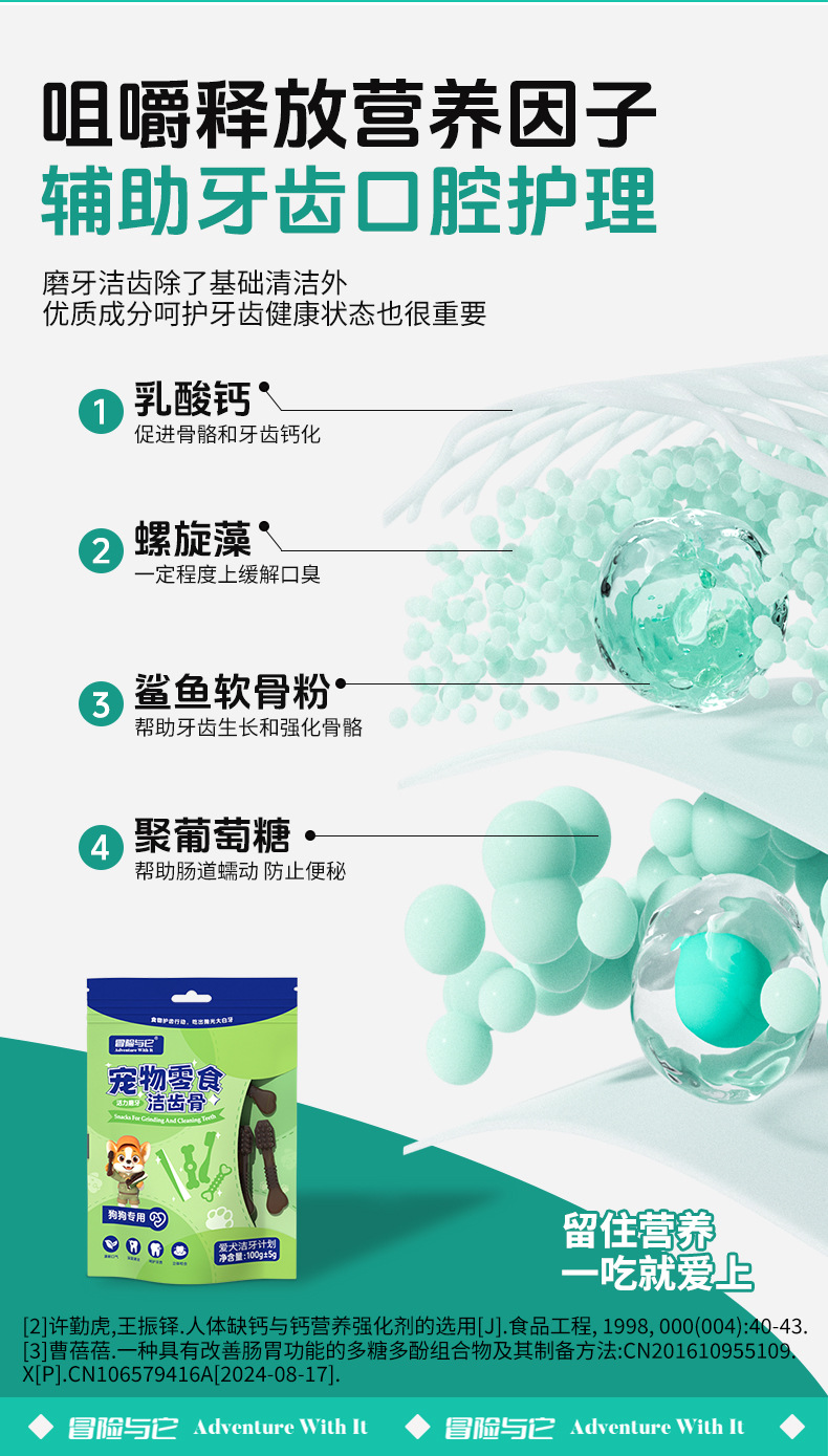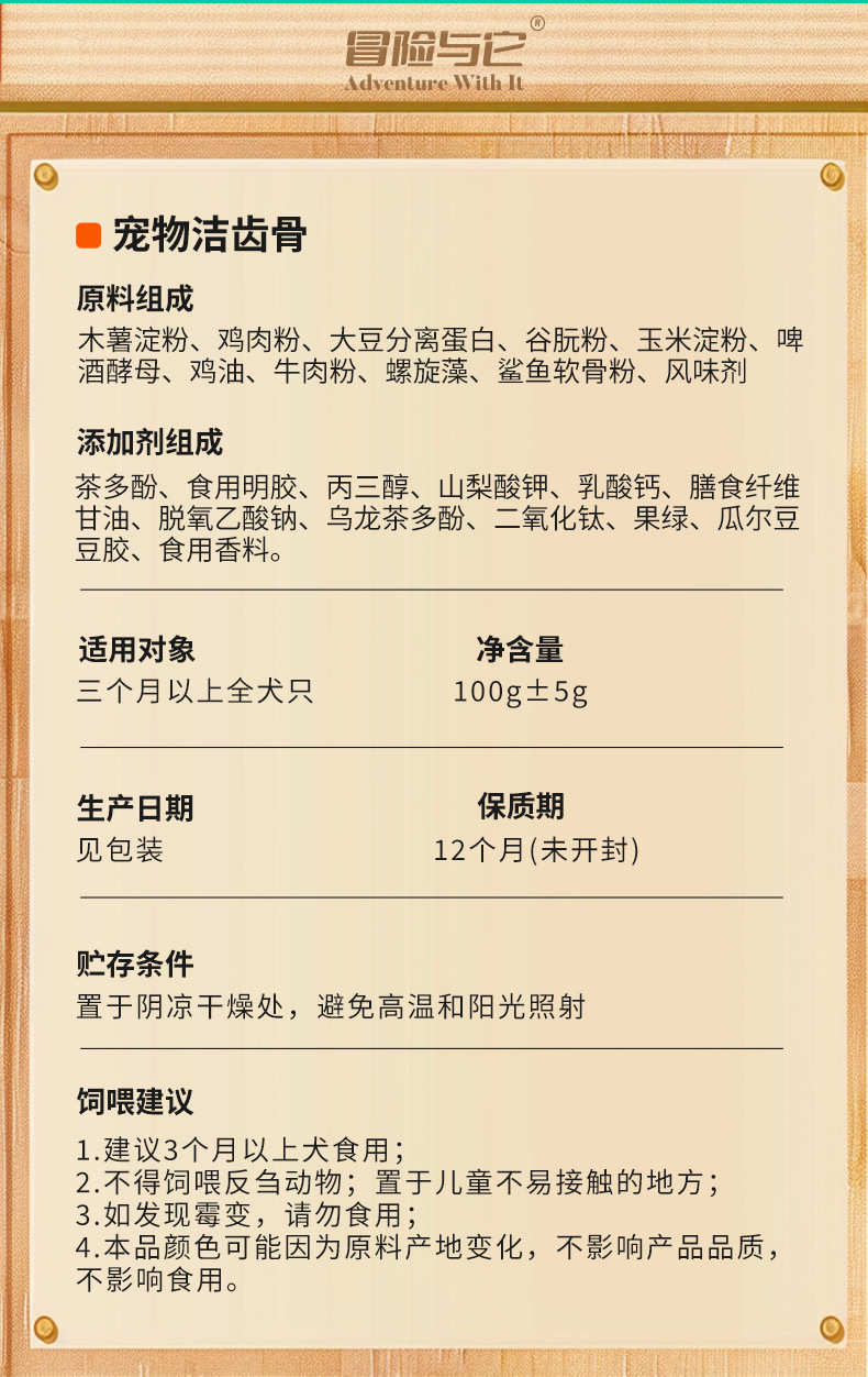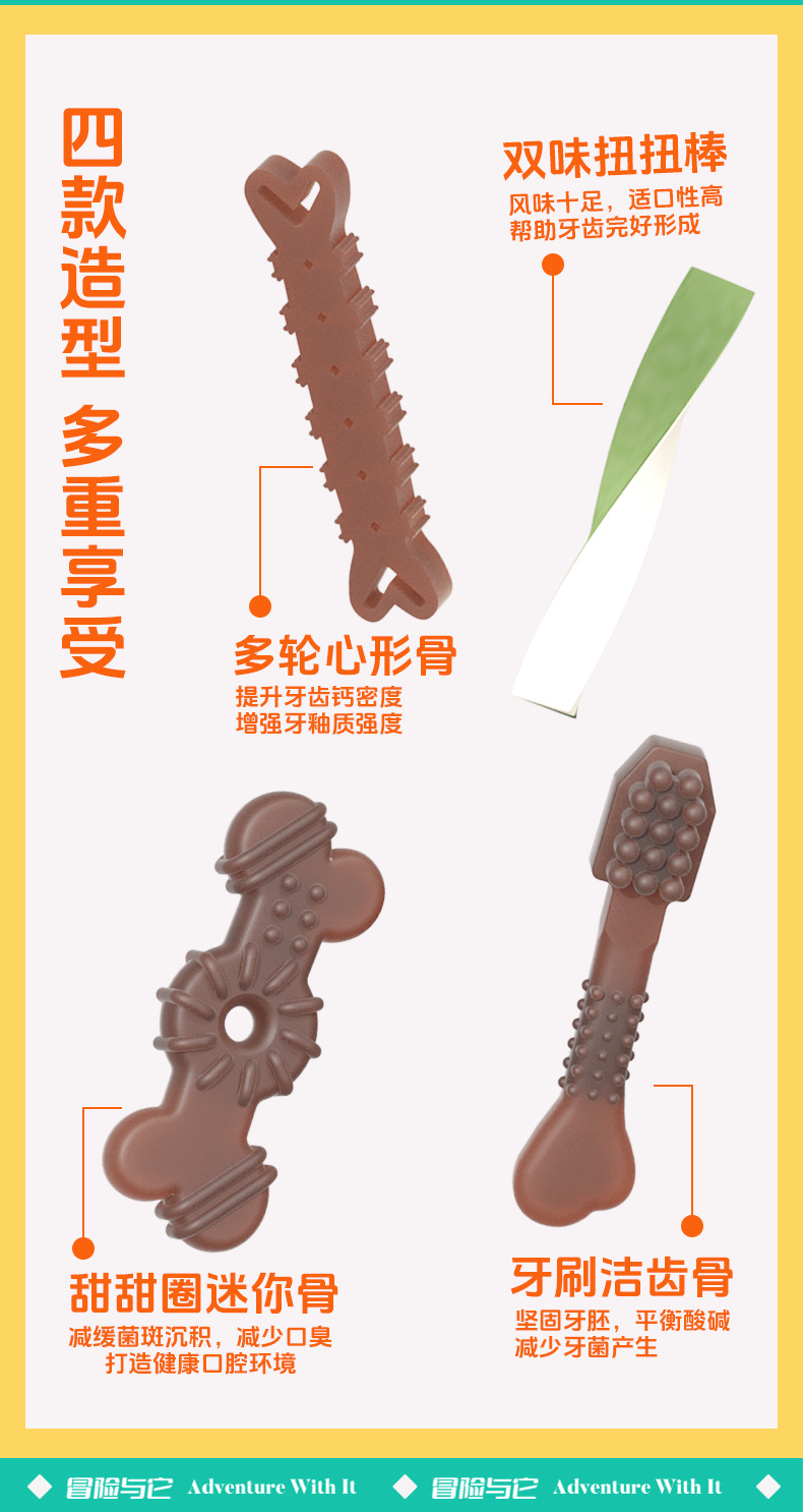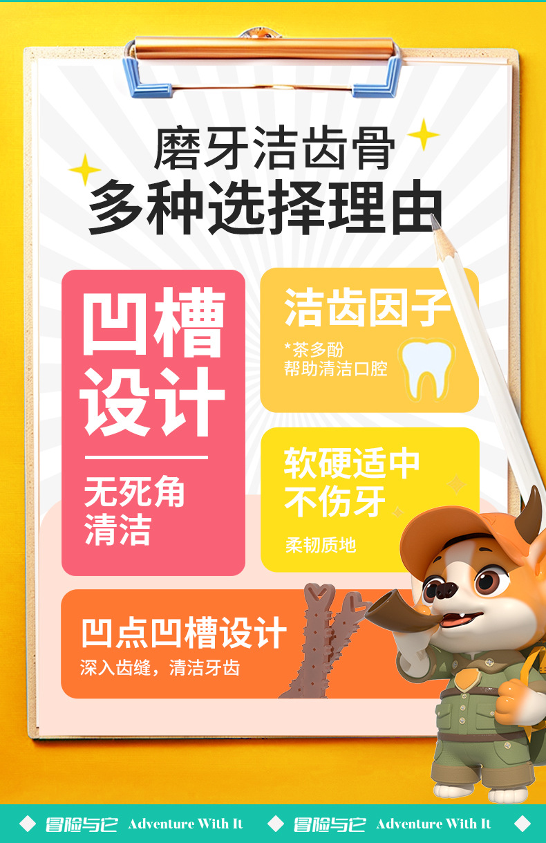 冒险与它狗狗洁齿骨100g 茶多酚除口臭异形磨牙棒 宠物耐咬磨牙