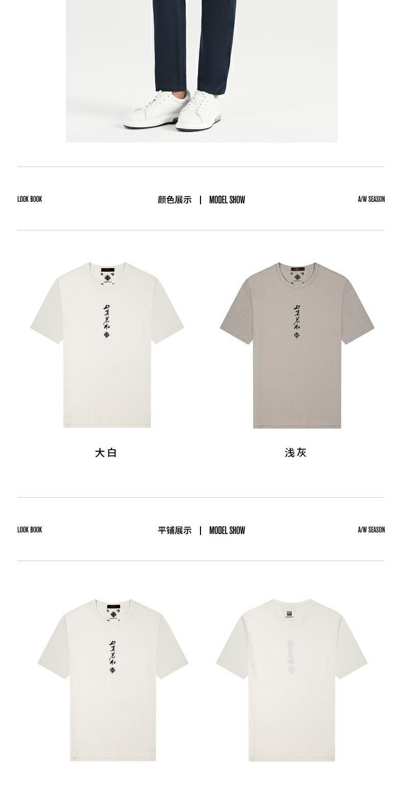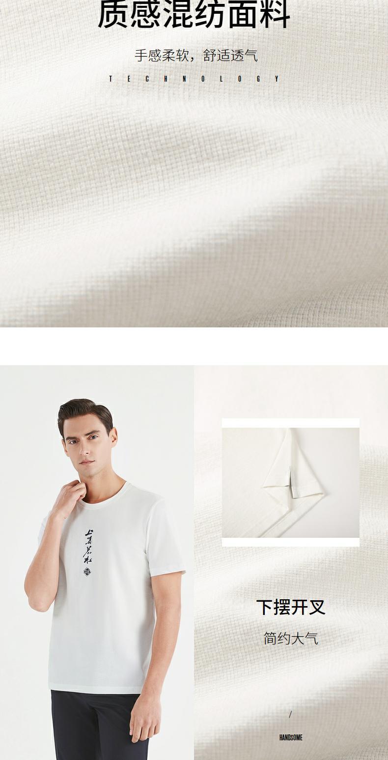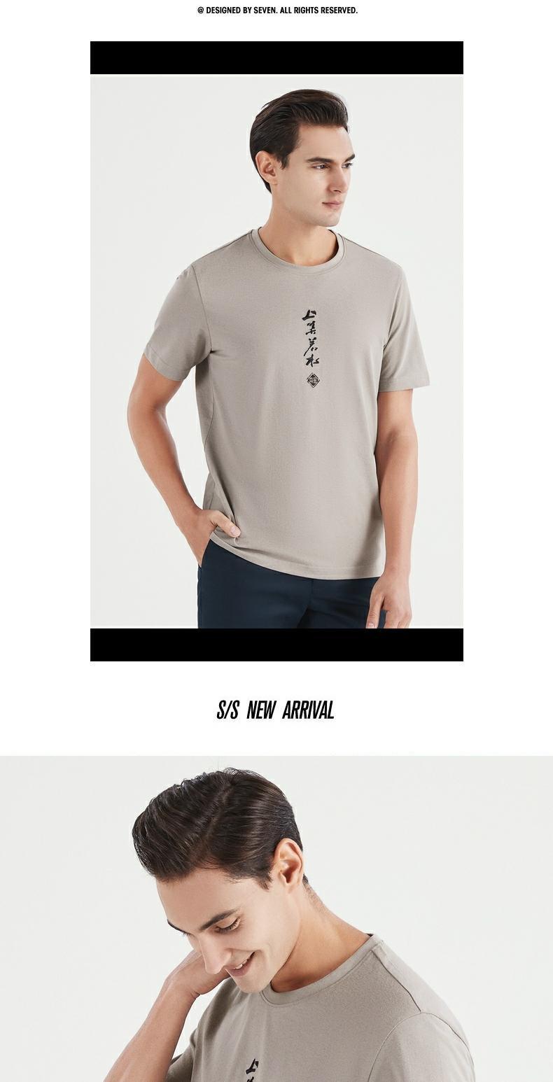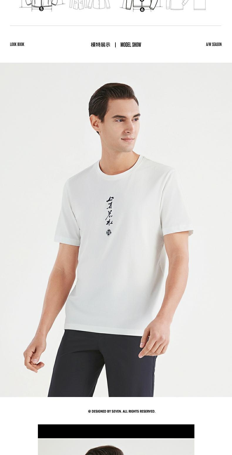 柒牌t恤短袖夏季新款国风绣印汉字时尚圆领上衣 122T71030