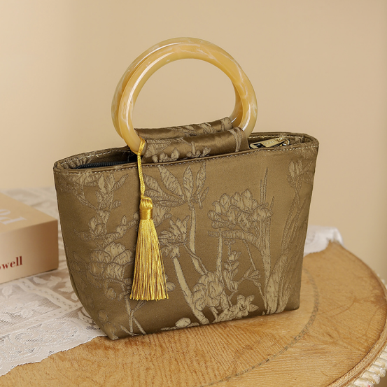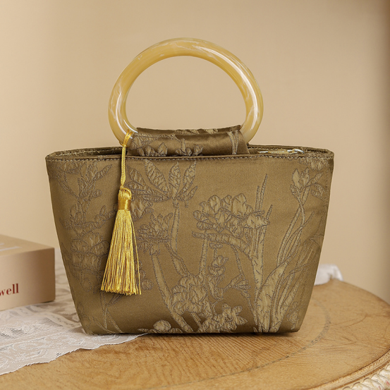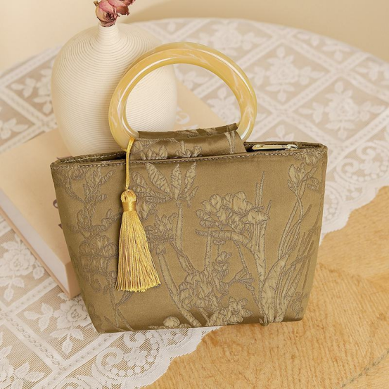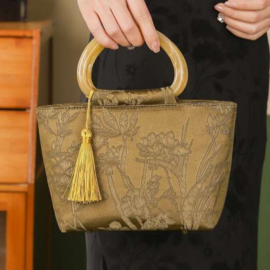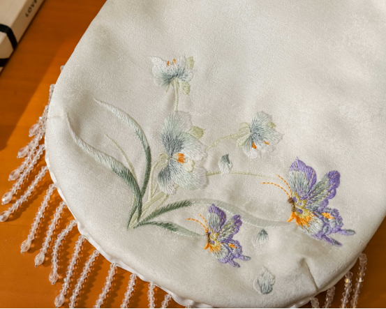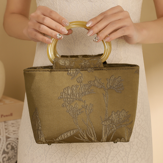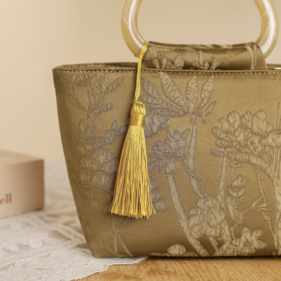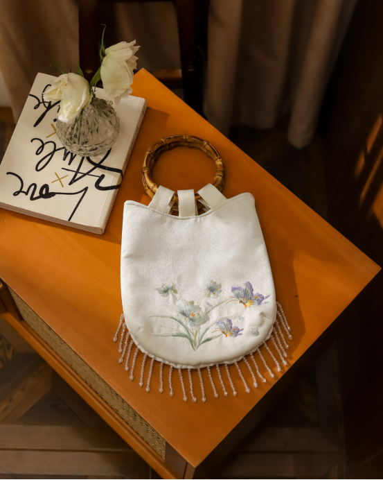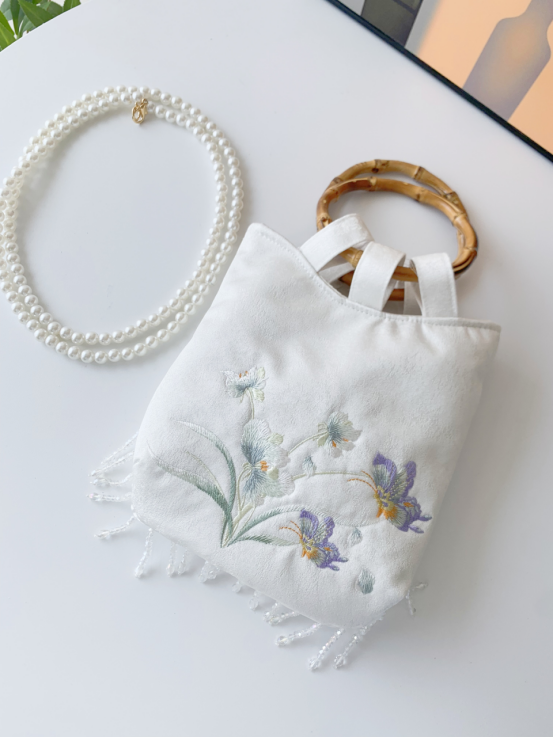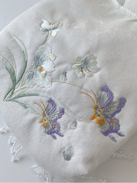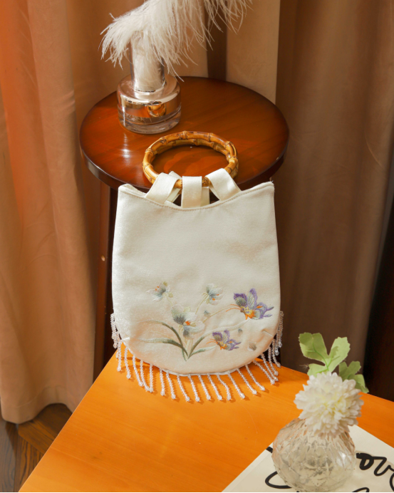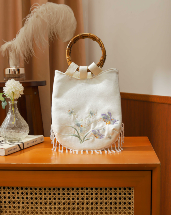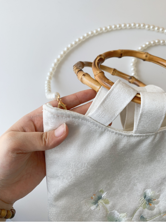 以细腻的蚕丝面料为基底 融入兰花🌸与蝴蝶🦋的刺绣艺术, 每一针一线都透露出精致与优雅 手提柄采用仿竹条设计,坚韧耐用,古色古香的气息扑面而来🌿 不论是搭配一袭旗袍,还是轻盈的连衣裙, 都能成为点睛之笔,瞬间提升气质与韵味👗 内部容量大轻松满足日常所需轻松收纳。💼 袋口巧妙的隐藏磁扣设计确保了物品的安全 内部的小隔层更是贴心,不再担心丢失小物件,安全感满满🛡️