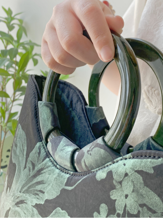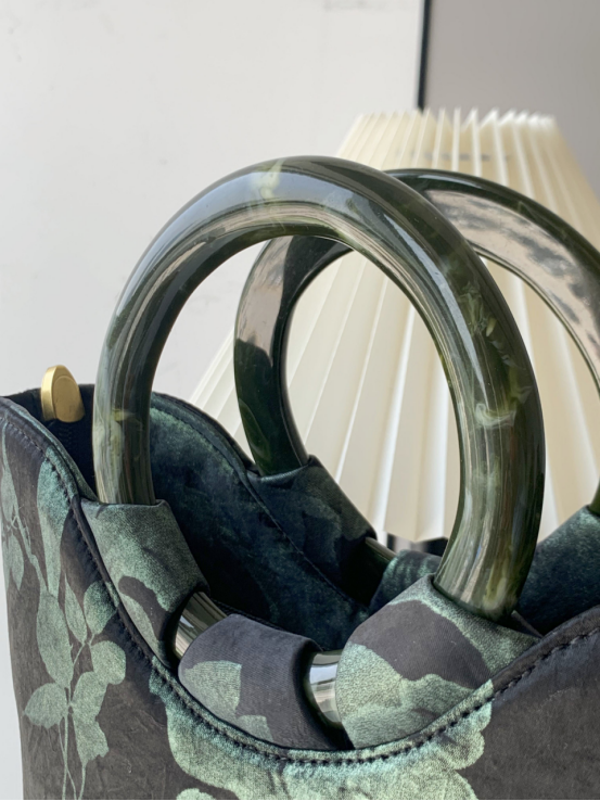 👜 包型简约而不失高雅,水桶设计经典永不过时。 绿色树脂圆形手环,如同绿叶轻托,既呼应了水墨的自然之美,又为日常穿搭增添一抹中式风情。 拿在手里优雅气质的不言而喻 🌙 这个包包给人一种夜晚来临,花香随风的感觉 “夏日花香伴我入梦”这句话跃然眼前 仿佛有淡淡的墨香与诗意💖 不需要过多的言语 只需一眼,让绿意长伴,优雅如诗。