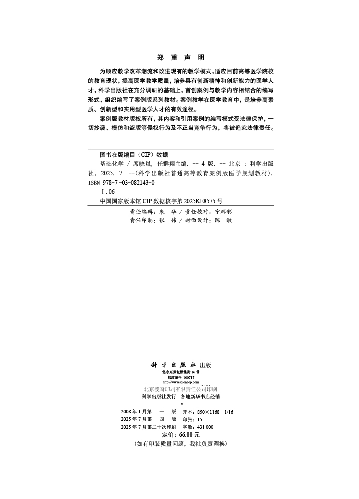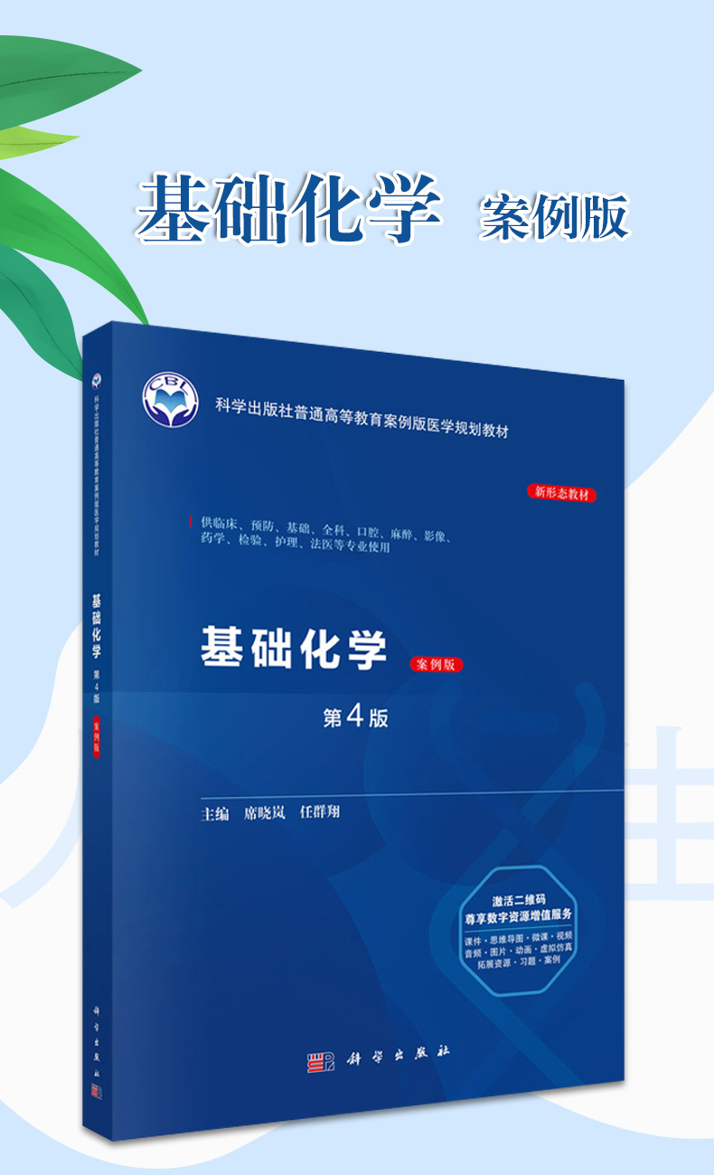 基础化学 案例版 第4版 普通高等教育案例版医学规划教材 席哓岚 任群翔 供临床预防基础口腔麻醉影像护理法医等专业使用科学出版社