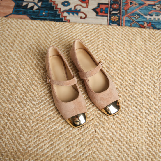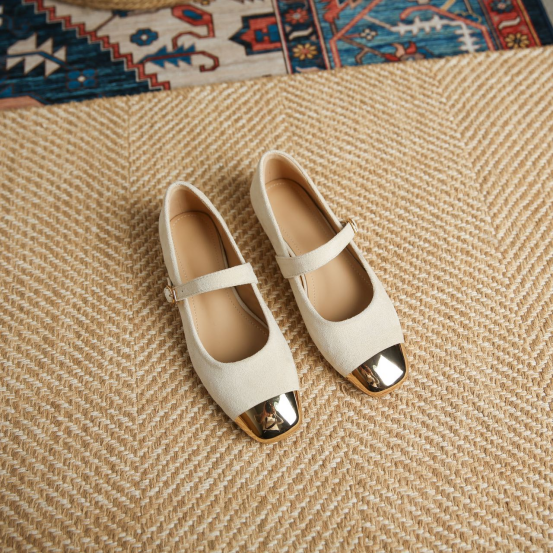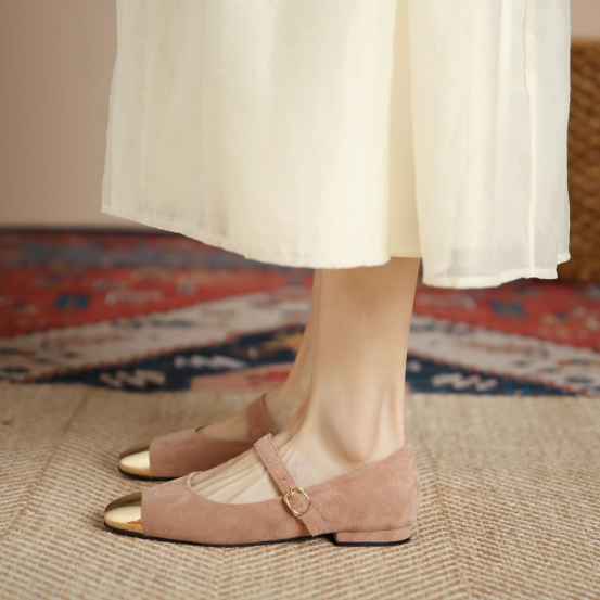 南茴NANHUI防踢头甜美气质风平底单鞋#8176-2 羊京绒鞋面,透气舒适,材质柔软细腻,防潮有质感
