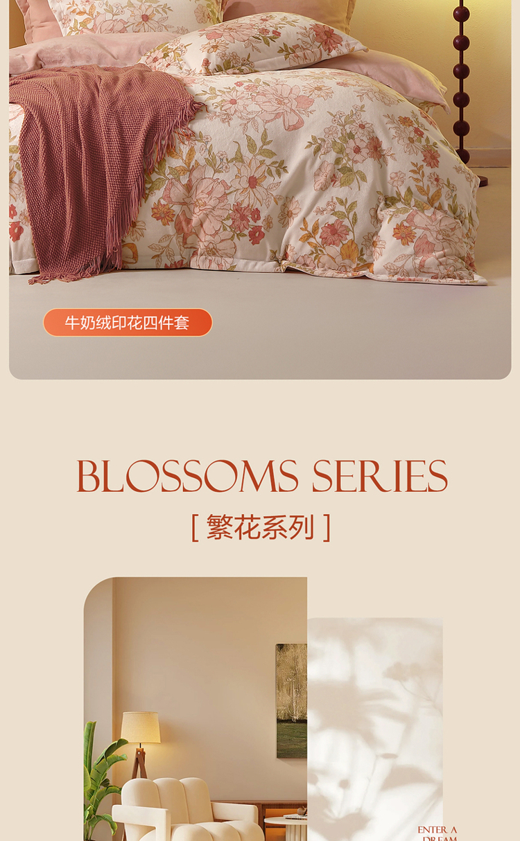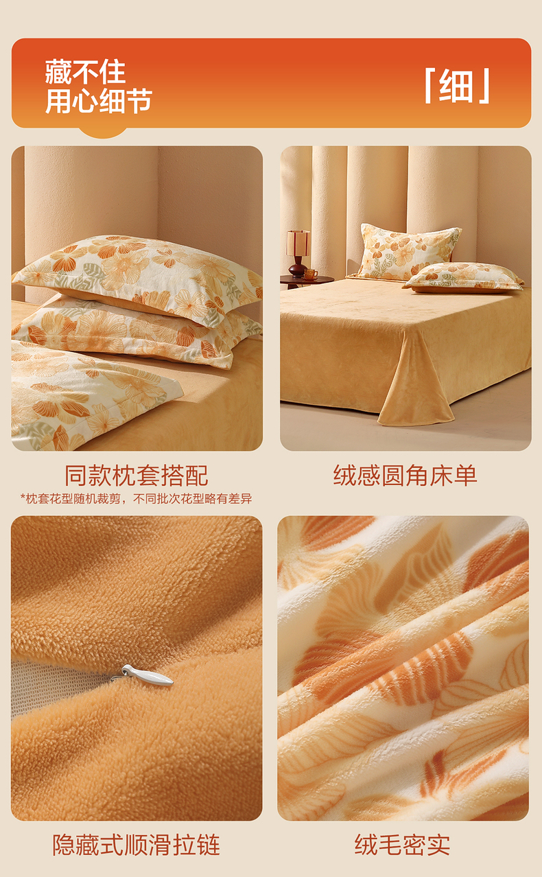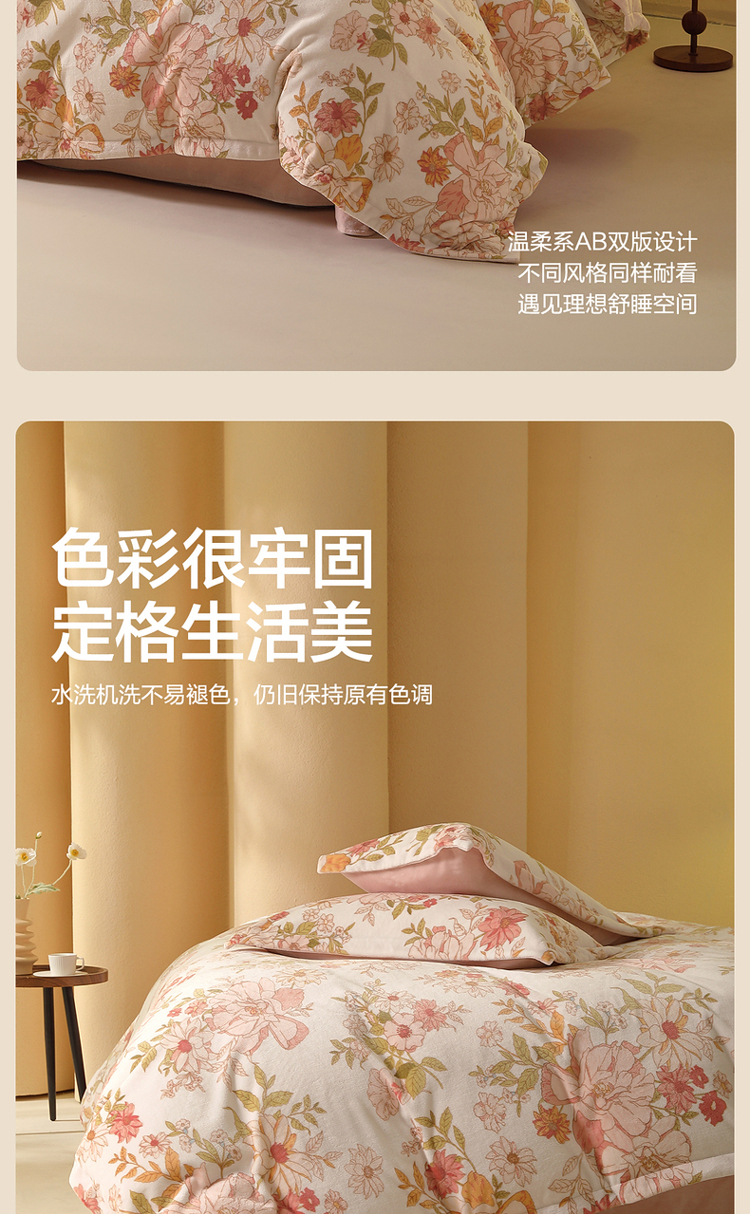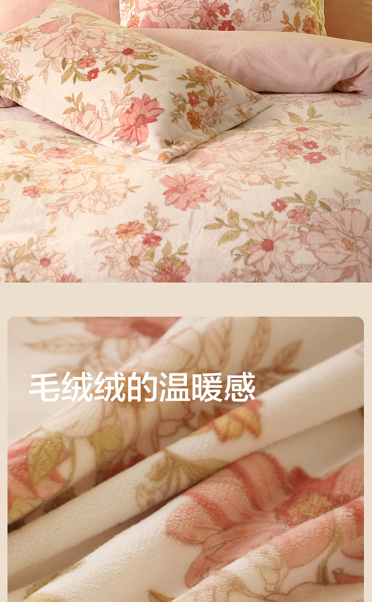 水星家纺A类牛奶绒印花四件套
