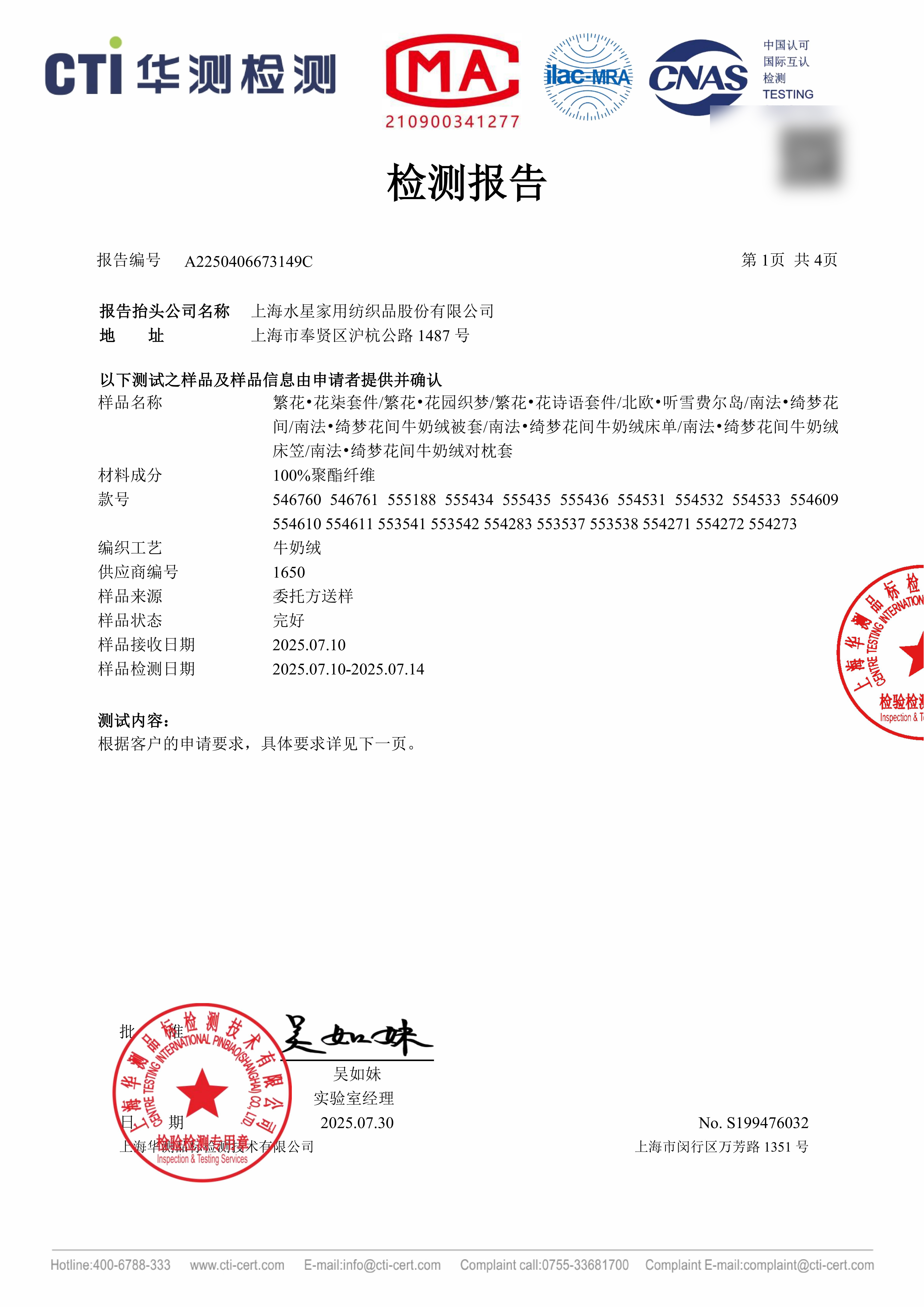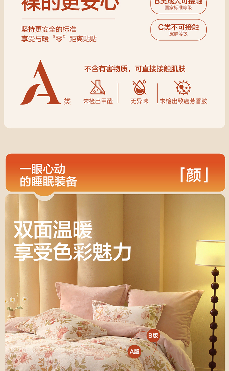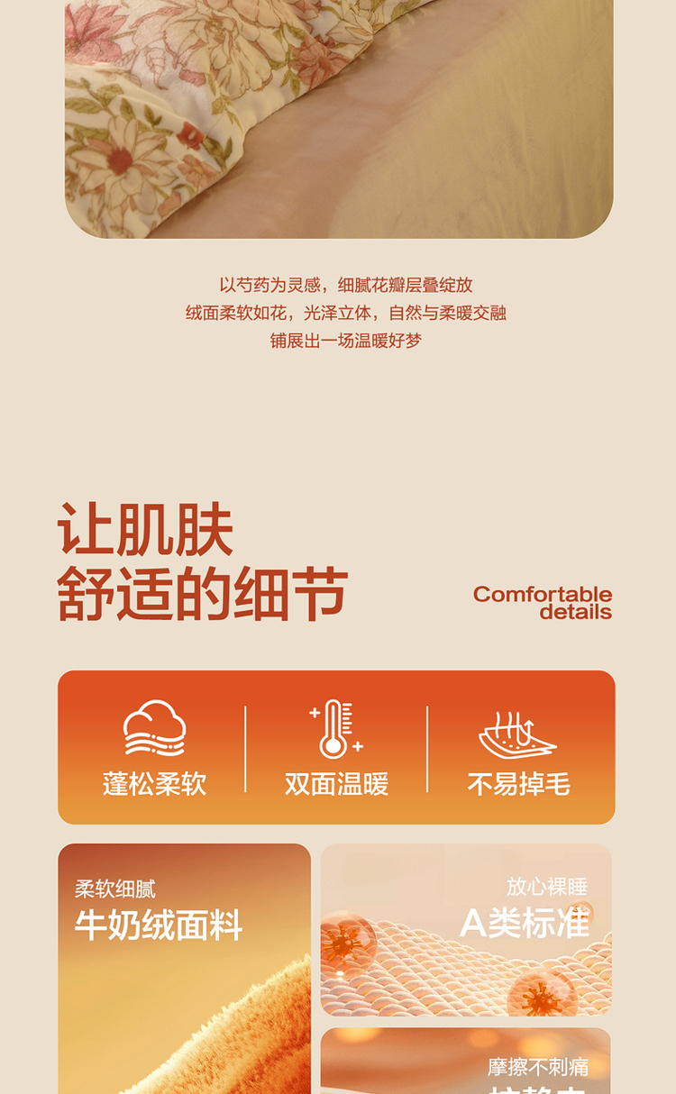 水星家纺A类牛奶绒印花四件套