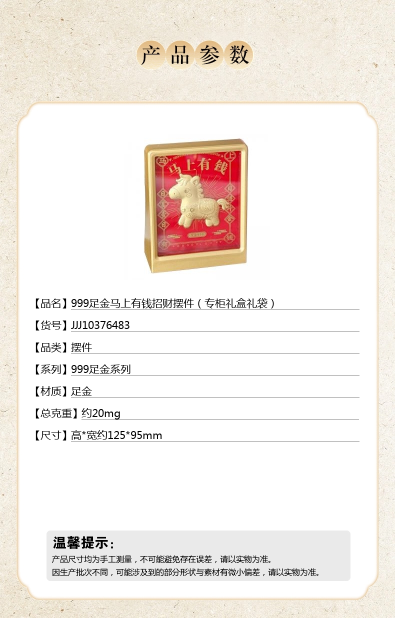 【品名】999足金马上有钱招财摆件(专柜礼盒礼袋)