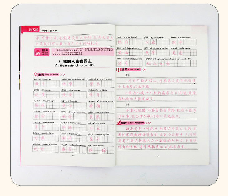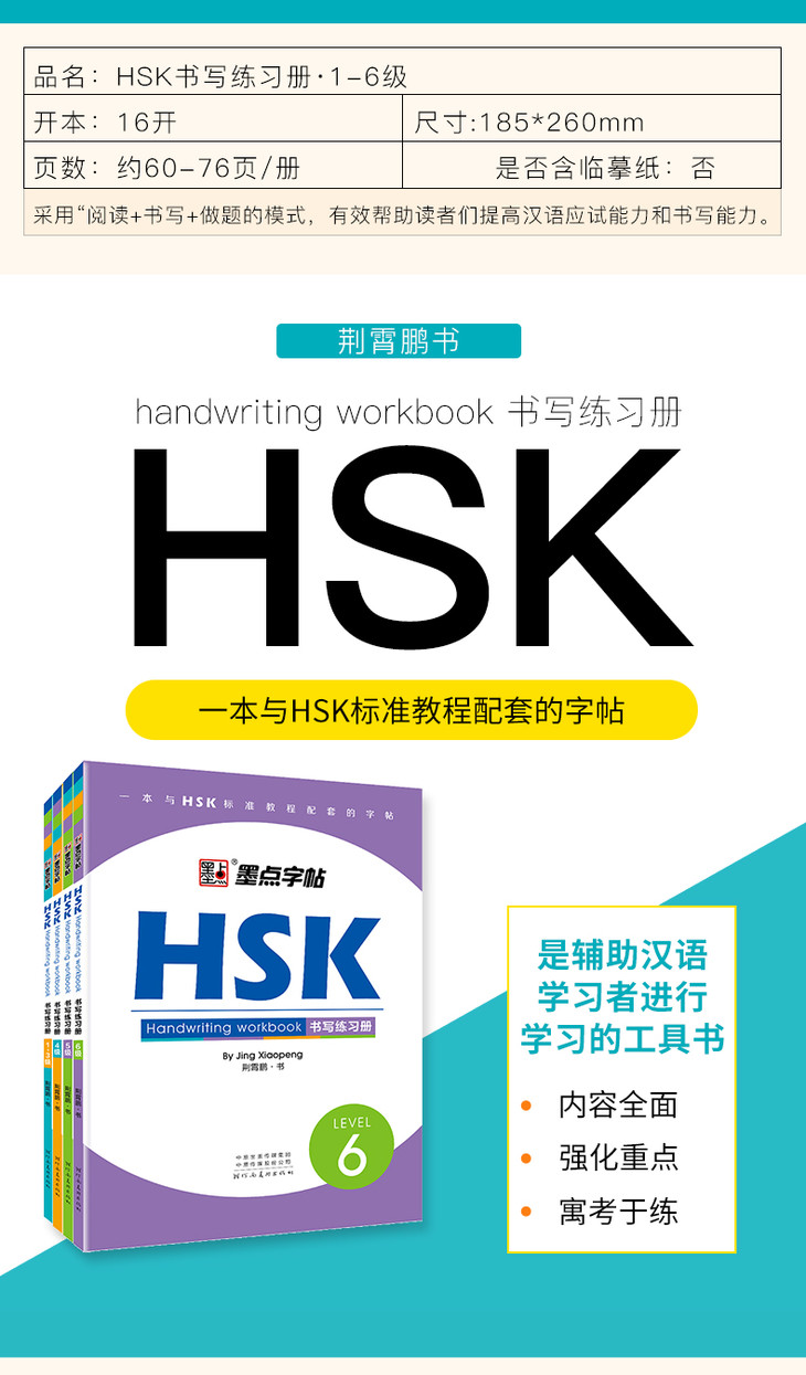 墨点字帖HSK LEVEL1-6级书写练习册汉语中文学习工具书对外汉语教学中英互译阅读书写做题专项训练教程汉语书写荆霄鹏楷书中文字帖