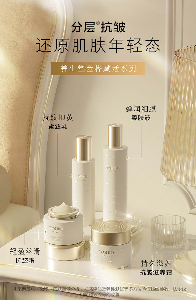 - 养生堂YOSEIDO,高端护肤品牌。专研白桦原液•来自北纬45° 的细胞抗老成分,源自1772年《丹麦药典》。不额外添加一滴水,让青春永续。