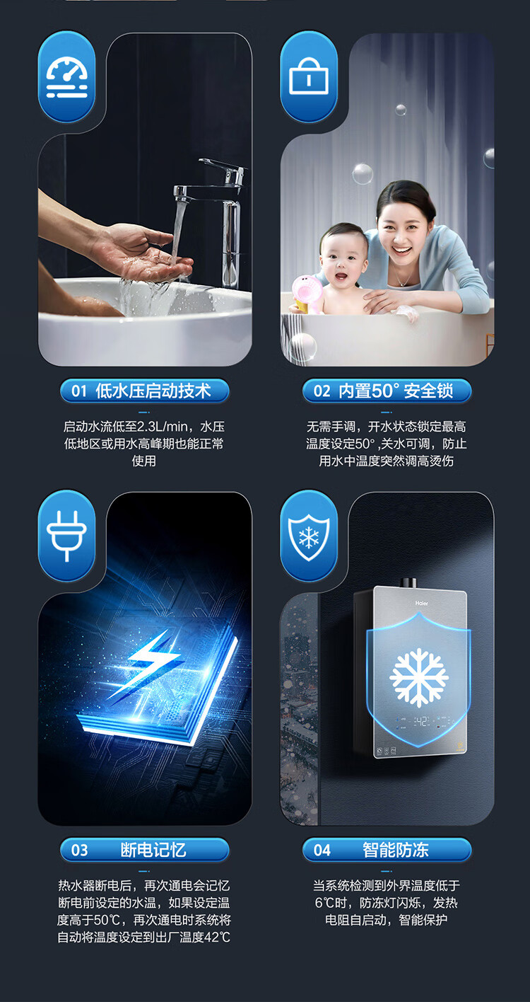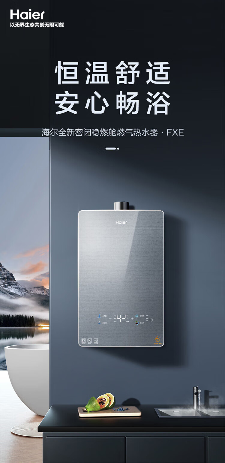 海尔(Haier)16升燃气热水器天然气 水气双调恒温家用智能 JSQ31-16FXE-FJXGU1 *