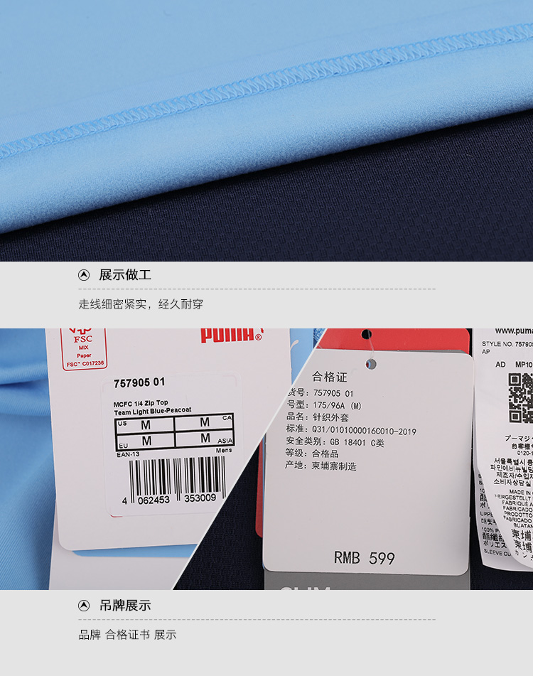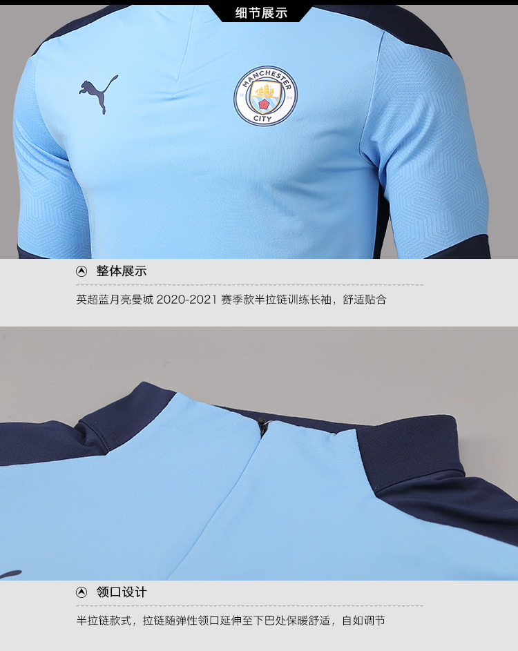 PUMA彪马 曼城20/21赛季半拉链长袖训练服75790501