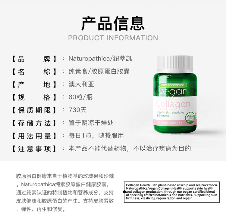 Naturopathica纽萃凯纯素食者 胶原蛋白胶囊60粒