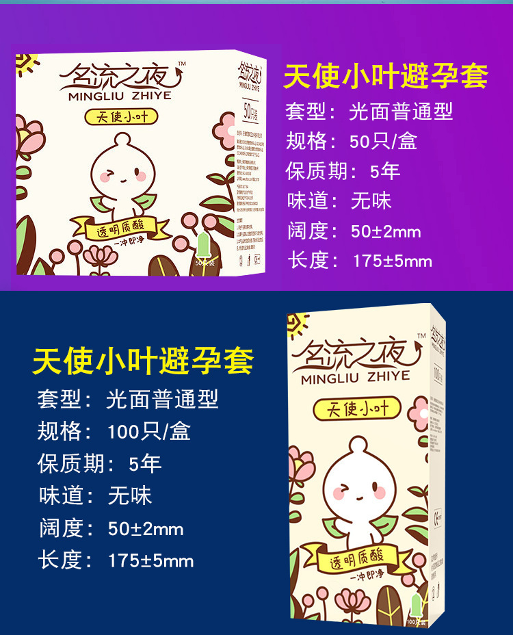 名流之夜避孕套玻尿酸天使小叶100只夜场套安全套情趣性用品