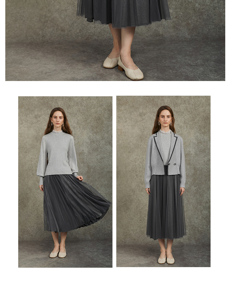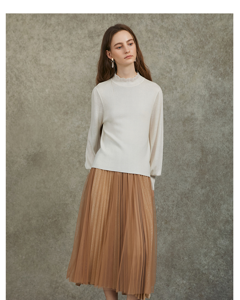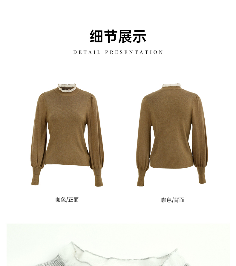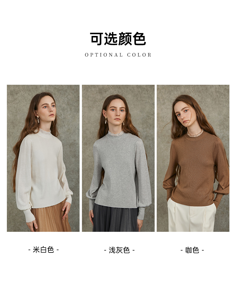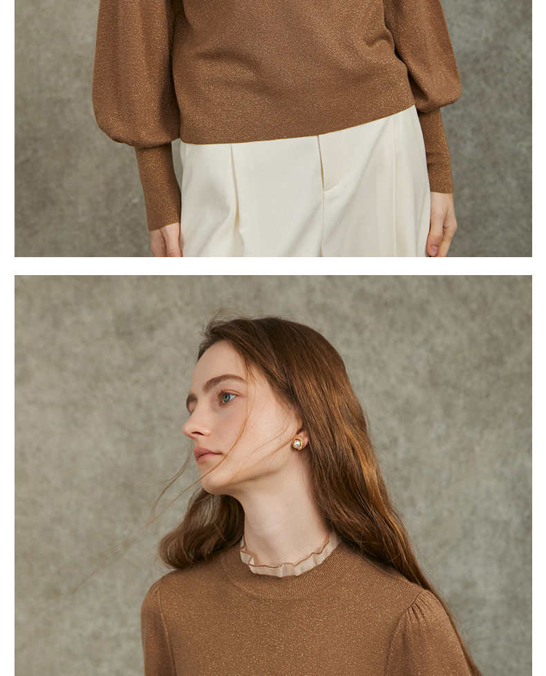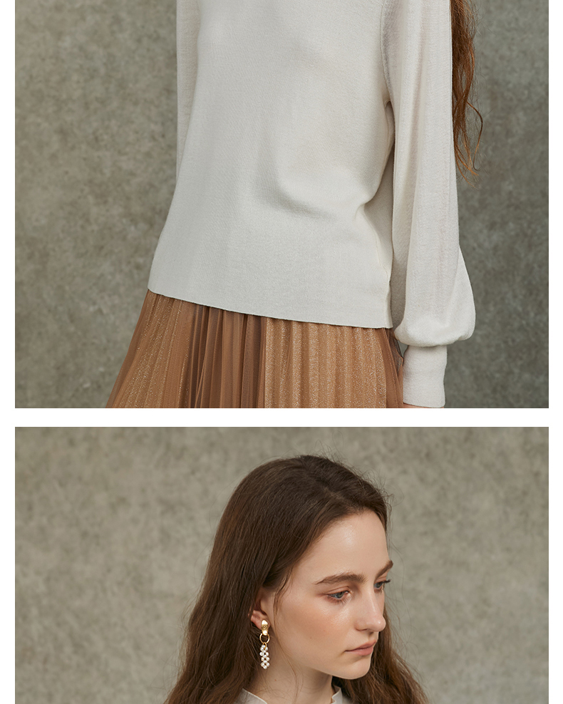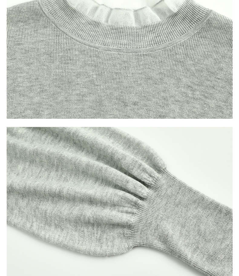 Famecoco范可儿泡泡袖羊毛针织衫欧根纱拼接圆领毛衫FAC6DC003