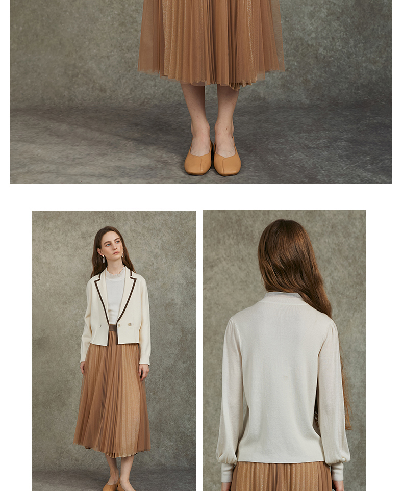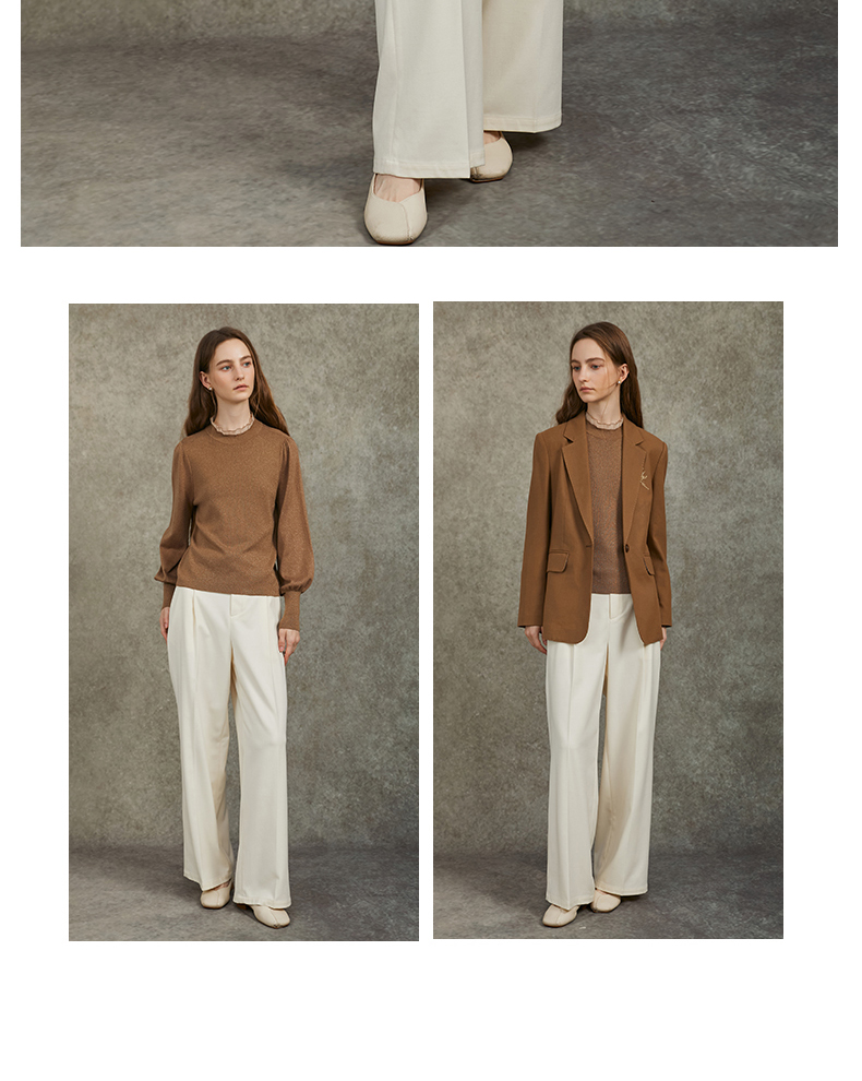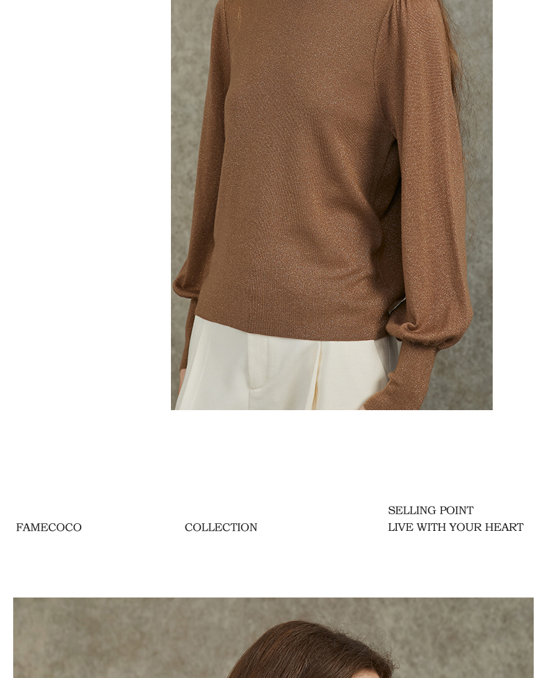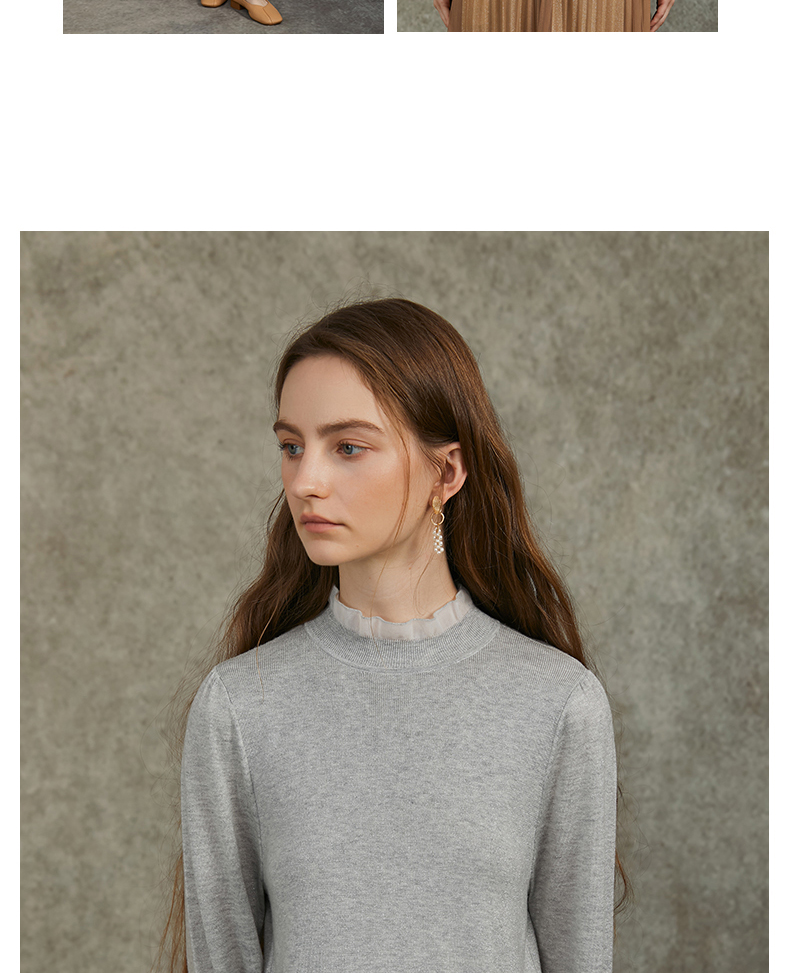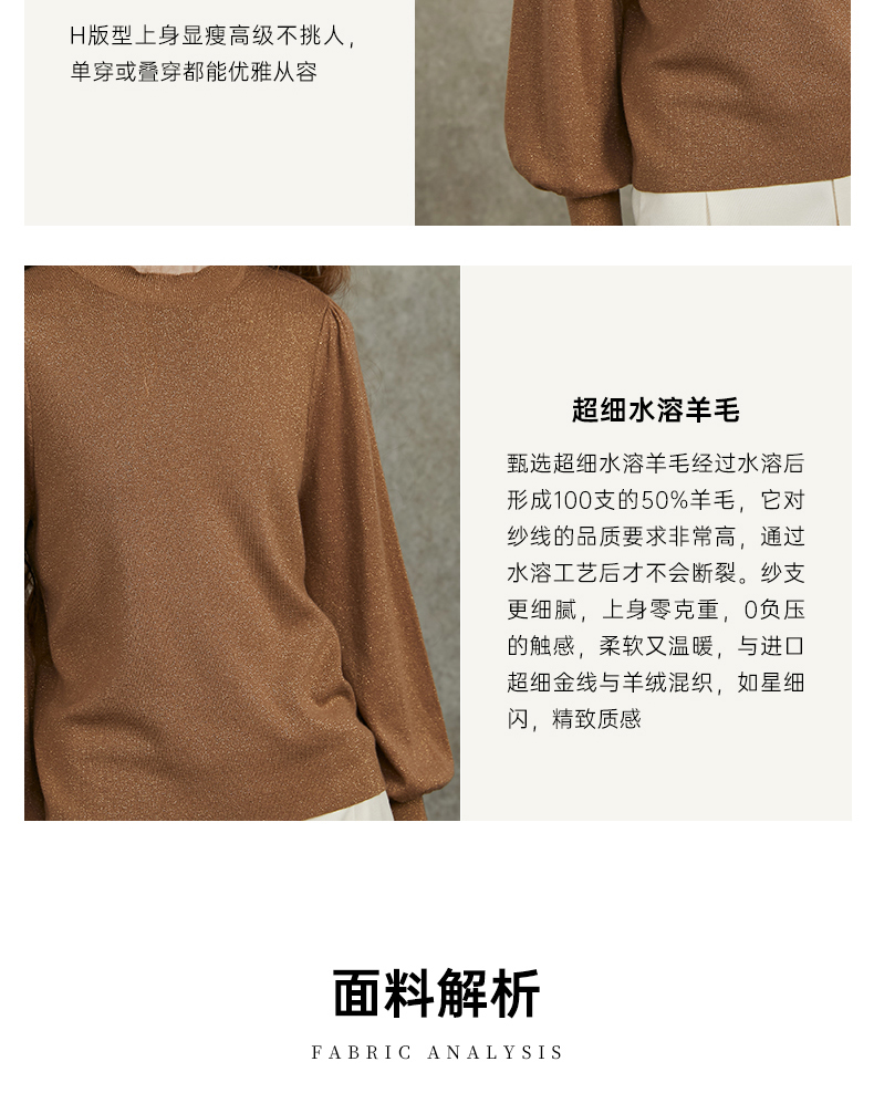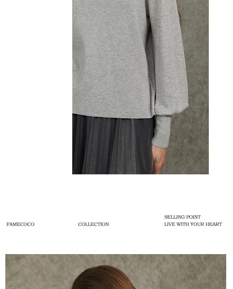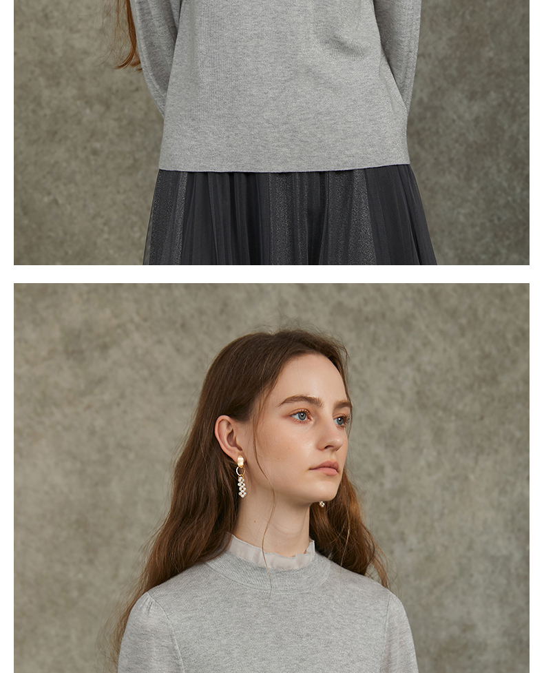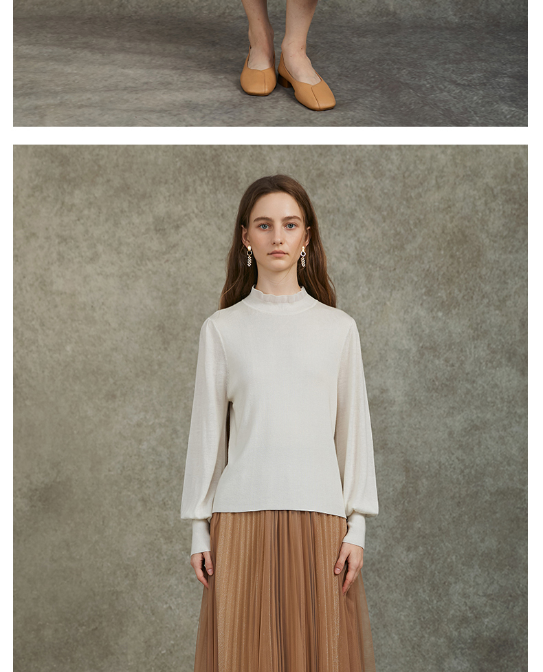 Famecoco范可儿泡泡袖羊毛针织衫欧根纱拼接圆领毛衫FAC6DC003