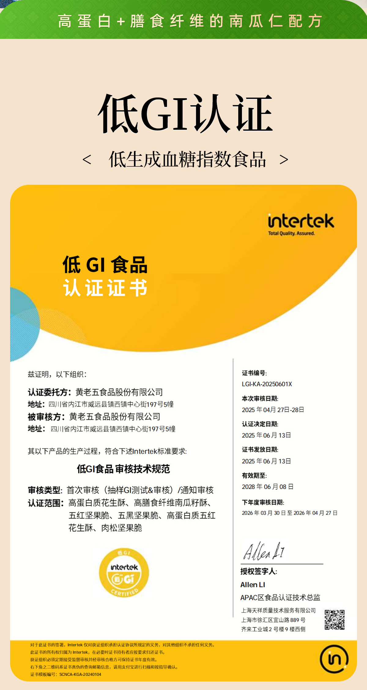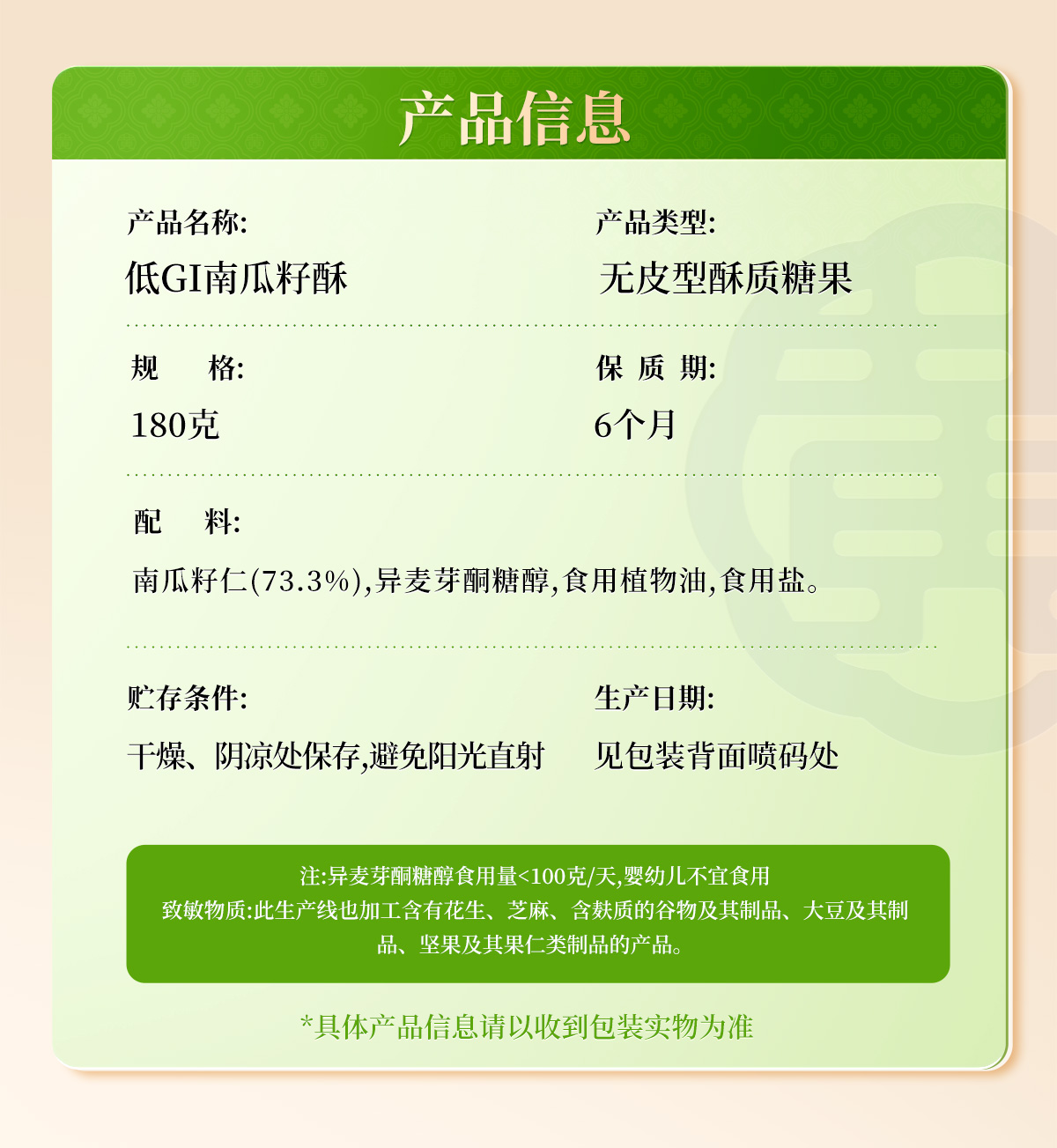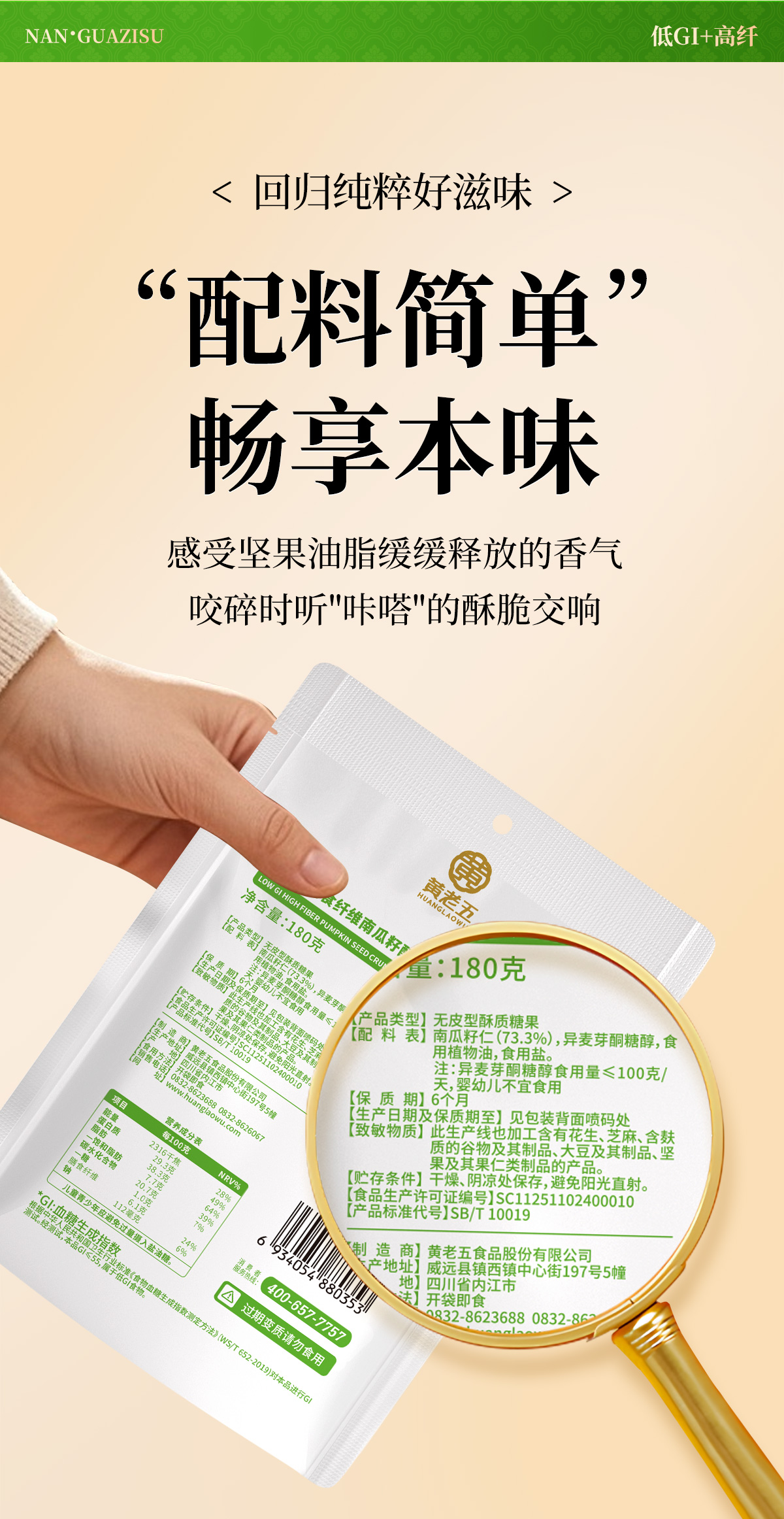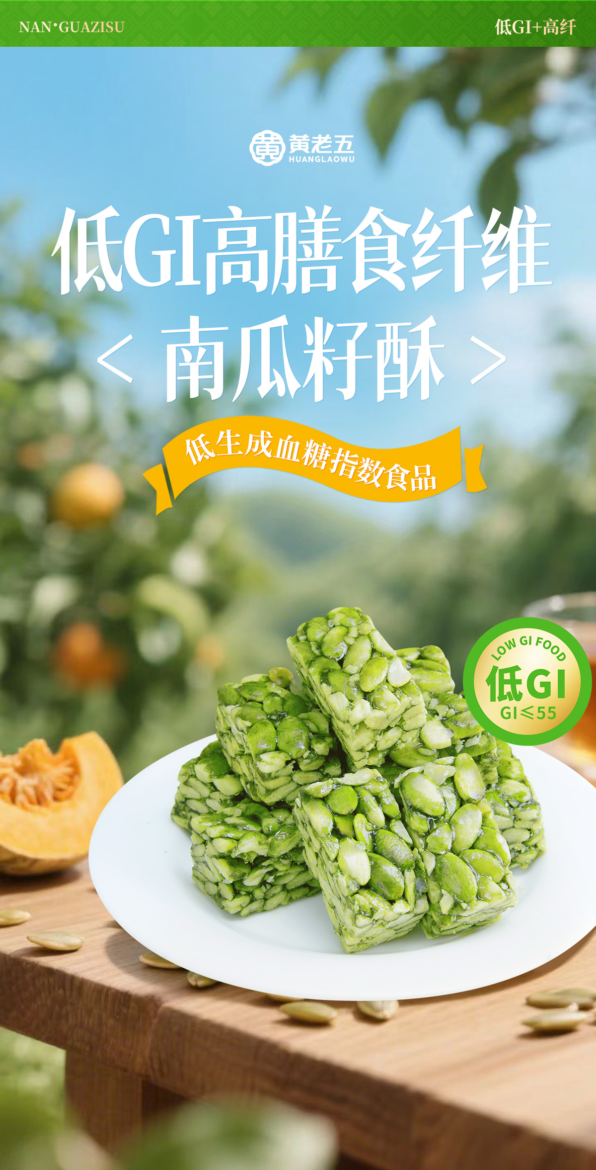 黄老五低GI高膳食纤维南瓜子酥180g